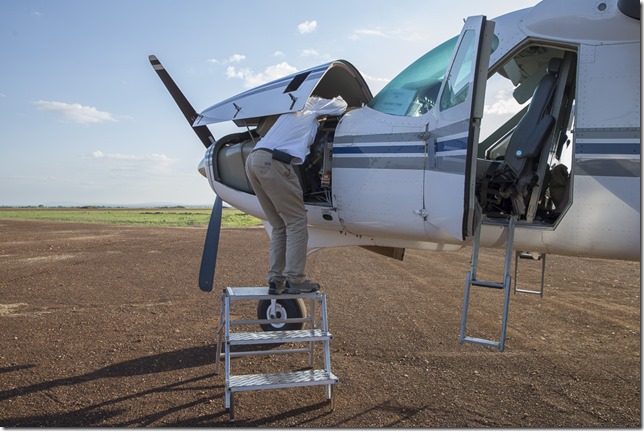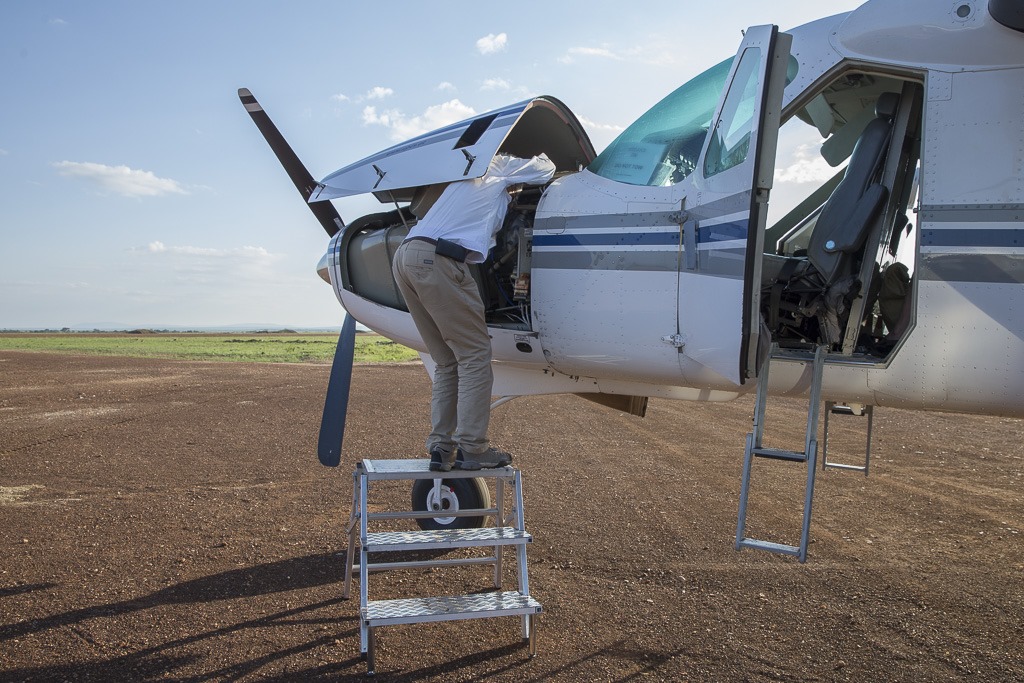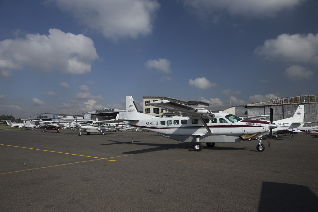 Bei der Zwischenlandung auf dem Wilson Airport in Nairobi kann unser Flugzeug seine Erfahrungen mit seinen Verwandten austauschen. Unzählige Caravans stehen da. Die Caravan ist das perfekt Flugzeug für die unbefestigten und zum Teil ruppigen Pisten dieser Region ist.