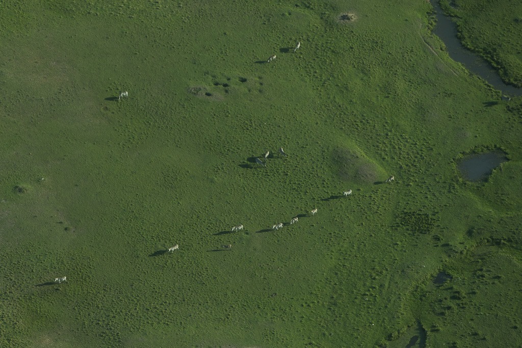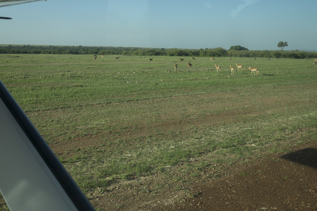 Die Tiere haben sich offensichtlich schon an lärmende und staubaufwirbelnde Metallgebilde gewöhnt. Selbst als wir zum Start rollen, entfernen sie sich nur ein paar Schritte.