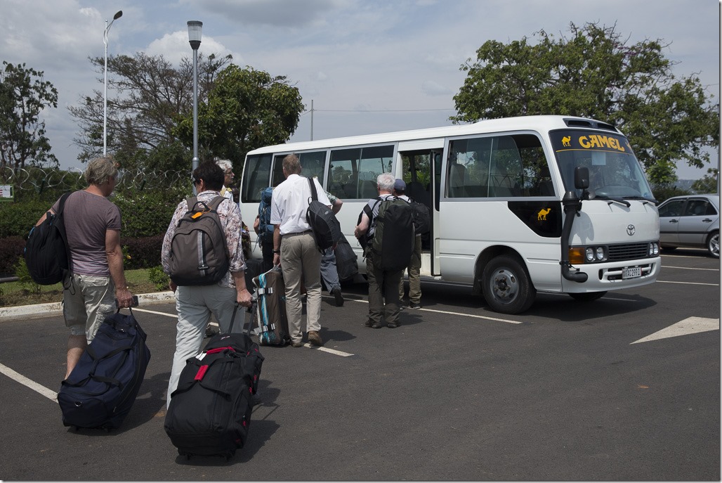 Wir haben uns entschieden, nach dem Visa-Formalitäten in Kigali nicht weiter zu unserer Lodge zu fliegen, sondern stattdessen mit einem Bus eine rund 2.5 h lange Fahrt nach Ruhengeri zu machen. Der Grund dafür ist, dass das Wetter in den Bergen relativ unbeständig sein kann und wir nicht riskieren wollen, nochmals irgendwo stecken zu bleiben.