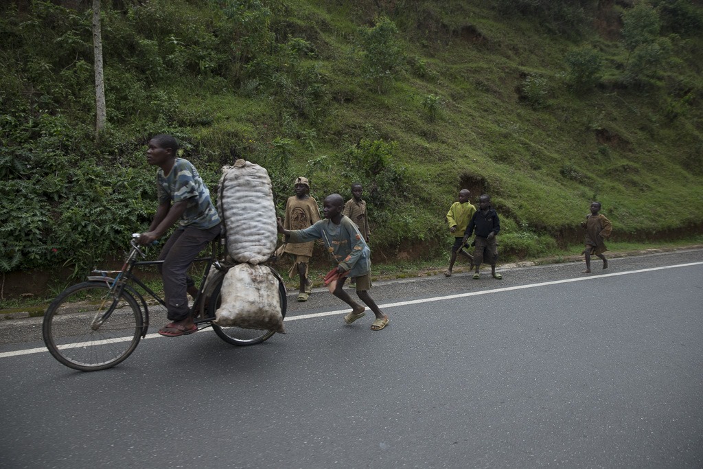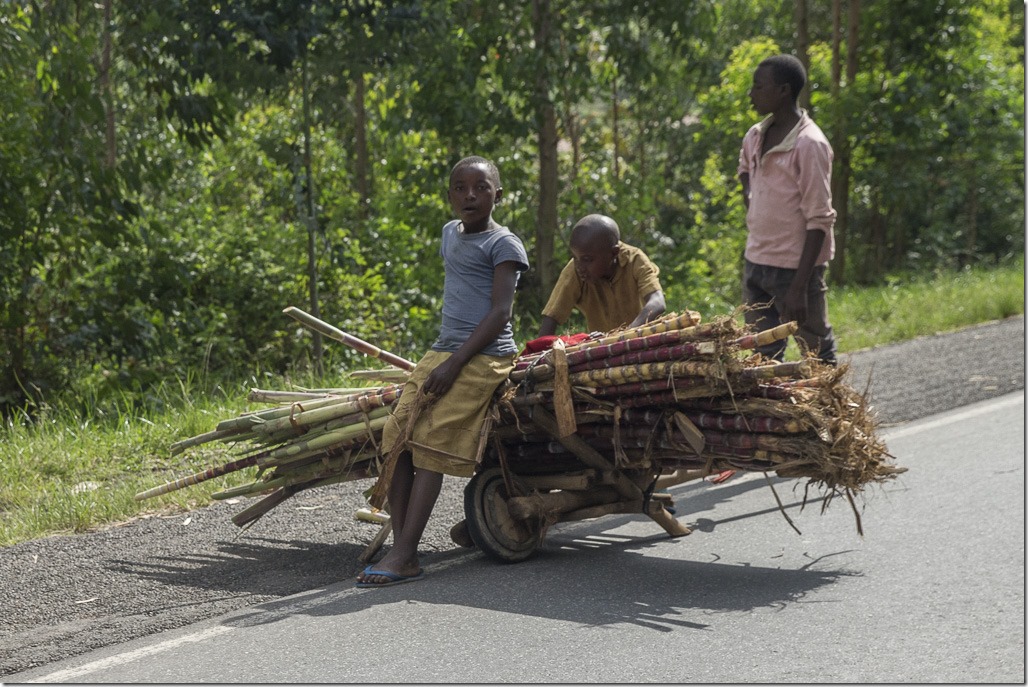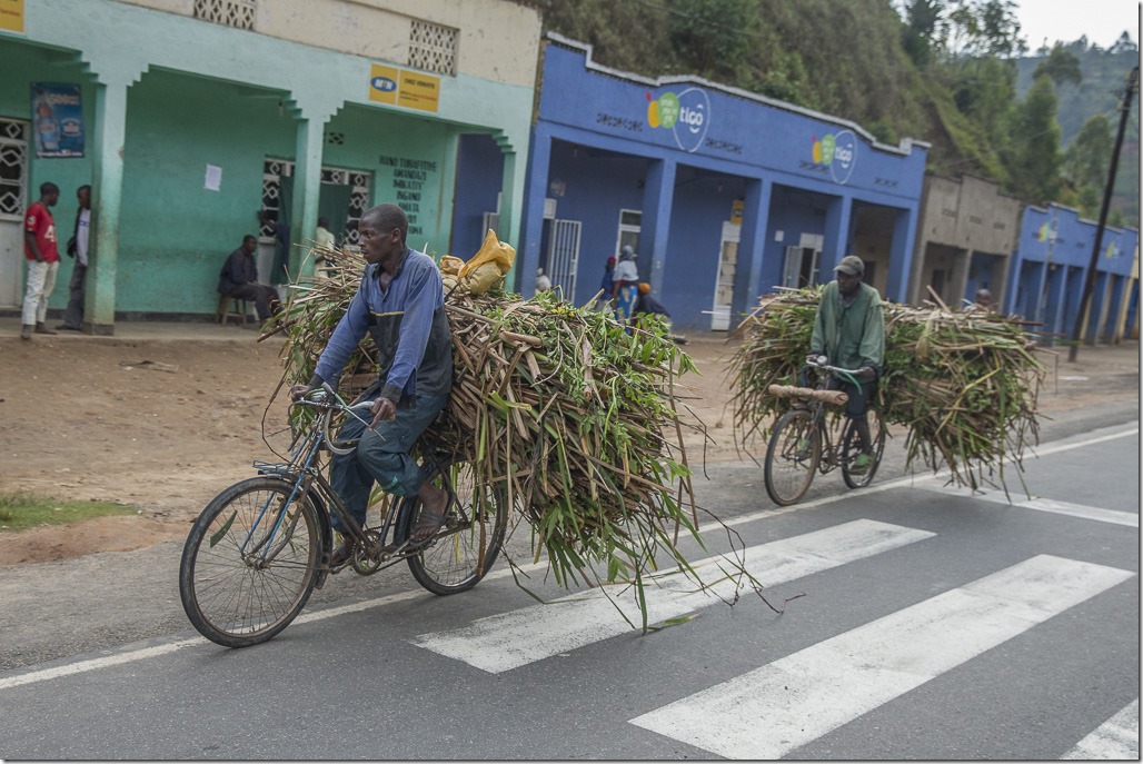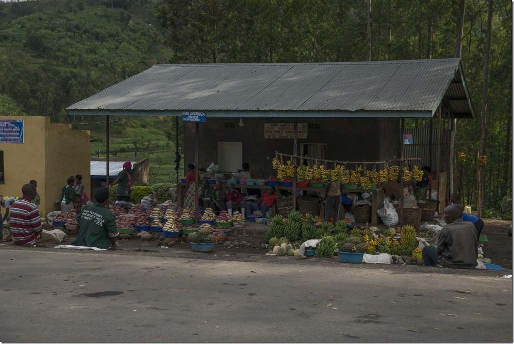 Kurz danach kommen wir nach Ruanda. Was sofort auffällt ist, dass die ganze Landschaft irgendwie glitzert. Beim genauen Hinsehen entdeckt man, dass das von den Blechdächer kommt. Offenbar sind hier die meisten Dächer aus Blech und nicht Stroh oder Tonziegeln.