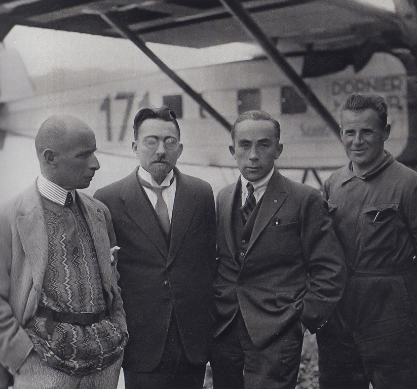Die vier Teilnehmer dieser Expedition waren v.l.n.r auf dem obigem Bild der Schriftsteller René Gouzy, der Geologe Dr. Arnold Heim, Walter Mittelholzer als Pilot und  Hans Hartmann als Mechaniker und Copilot.