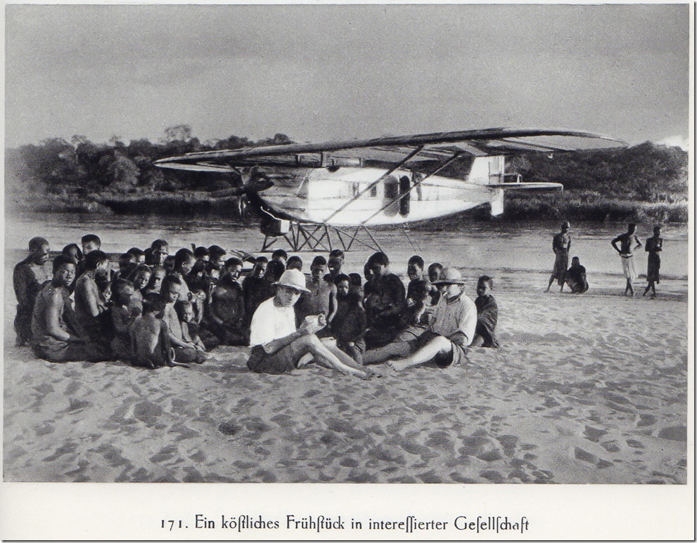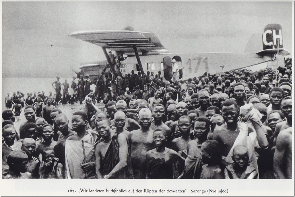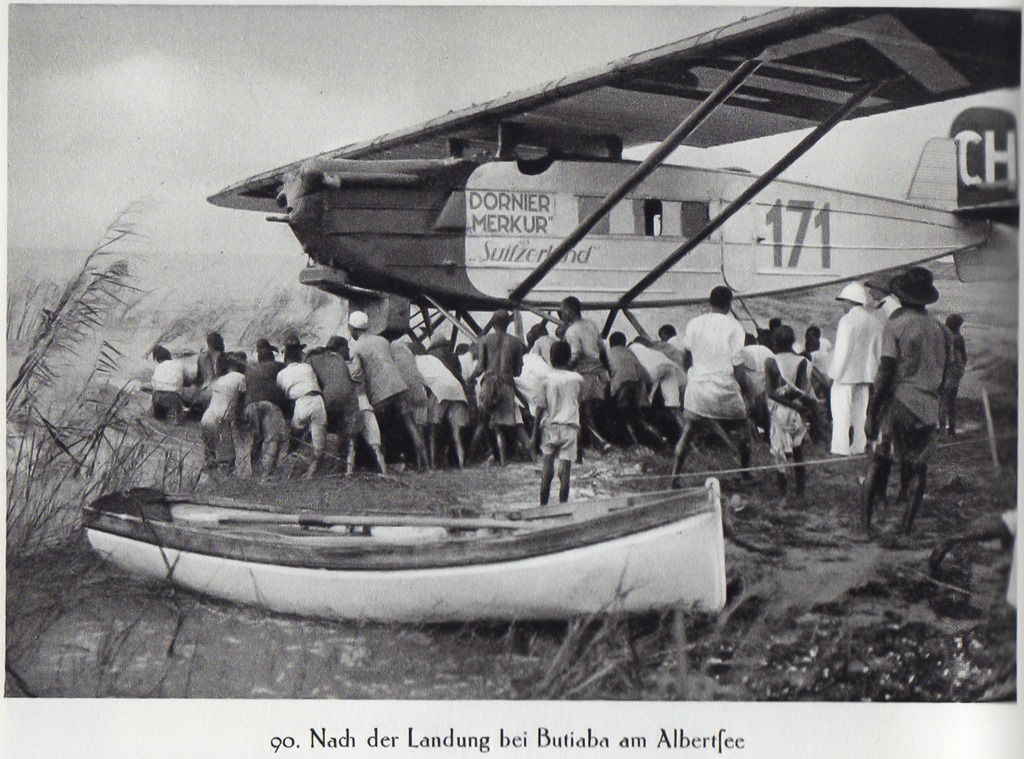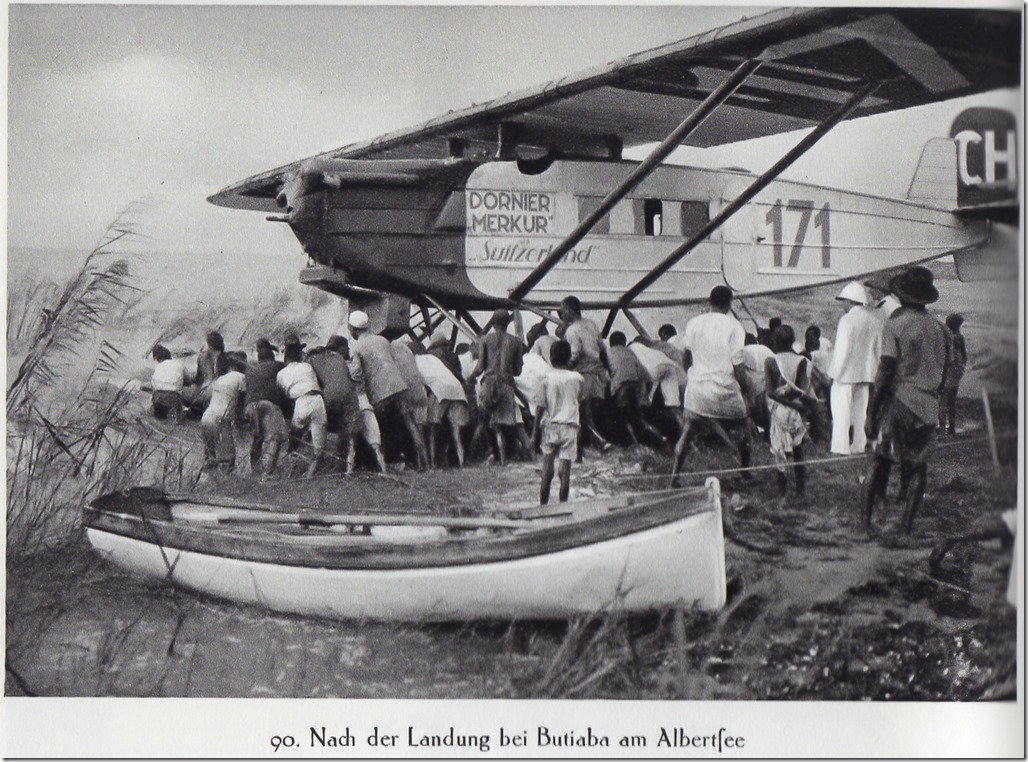 Das erste Staunen kam gleich: Mittelholzer war mit einem Wasserflugzeug unterwegs! Wasserflugzeug in Afrika? Wenn man es sich aber überlegt, gab es wohl 1927 noch nicht um jede Ecke irgendeine Landebahn, sodass sich wohl Flüsse und Seen als einzige zuverlässige Landemöglichkeiten anboten.
