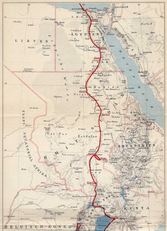Die Route führte mit Zwischenlandungen in Pisa und Neapel nach Athen und von dort nach Alexandrien.  Der weitere Flug folgte auf Grund der verfügbaren Wasserungsmöglichkeiten mehr oder weniger dem Verlauf des Nils bis zu dessen Quellgebiet. In Jinja am Nordufer des Victoriasees erzwang eine dringend notwendig gewordene Motorenrevision einen Aufenthalt vom 8. bis 30 Januar 1927. Weitere Stationen waren die grossen Seen wie Albert-, Victoria- und Tanganjikasee.
