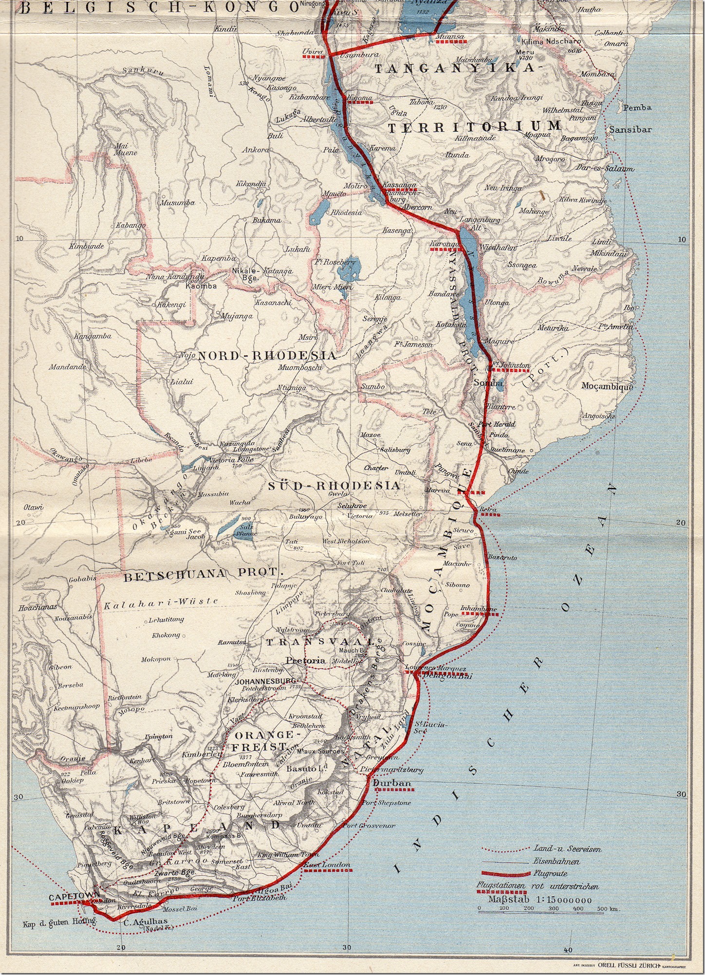 – Mittelholzer Walter: Afrikaflug – Im Wasserflugzeug “Switzerland” von Zürich über den Dunkeln Erdteil nach dem Kap der Guten Hoffnung, Orell Füssli 1927