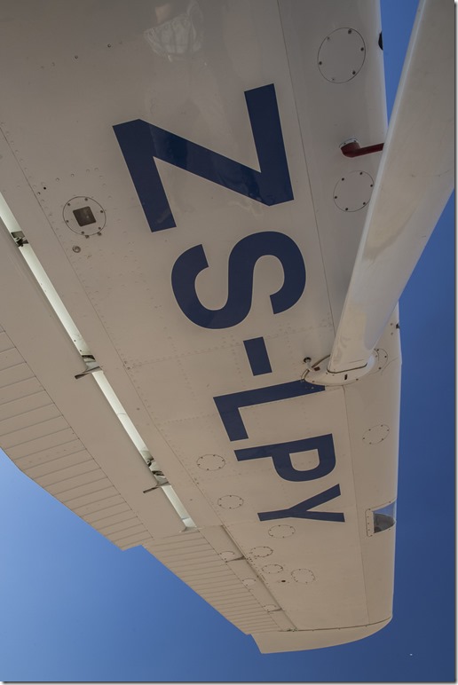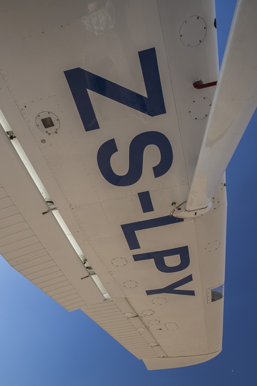 ZS-LPY, falls uns jemand vom Boden aus sehen will. Aber bis wir damit in der Nordhalbkugel auftauchen würden, würde wohl noch etwas Zeit vergehen. Die Reisefluggeschwindigkeit beträgt etwa 110 kn, was in etwa 200 km/h entspricht.