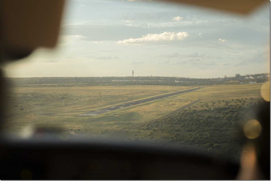 Je näher wir nach Johannesburg kamen, desto besser wurde das Wetter. Einzig beim Anflug auf Johannesburg gab es dann noch diesen “Nebel-Stau-See”.  Zuerst dachte ich, dass der Wonderboom Airport, von dem wir später mit der Cessna losfliegen wollten, sich genau unter diesem See befand. Das war ersten aber nicht so, denn der Flugplatz liegt auf der linke Seite des Bildes und zweites war bei unserem Start sämtlicher Nebel bereits von der Sonne weggefressen worden.