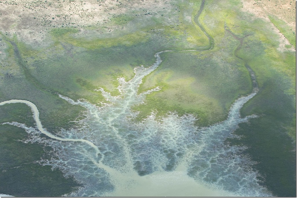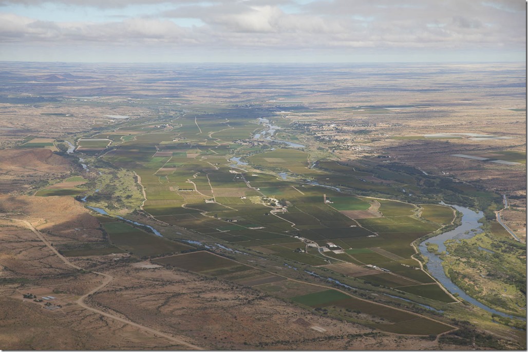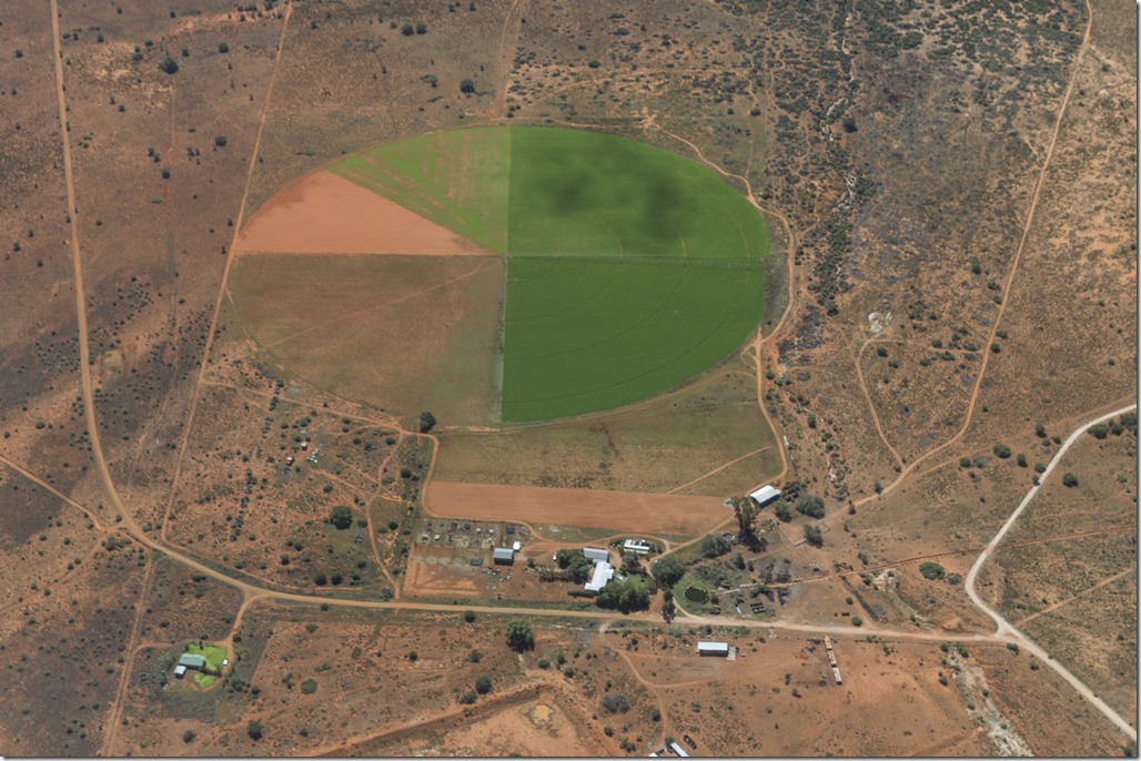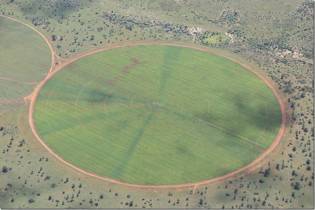 Immer wieder gibt es diese riesigen runden Felder. Es gibt hier offensichtlich mehrere Ernten pro Jahr, da manche Felder gelblich leuchten, während andere ganz in grün strahlen.