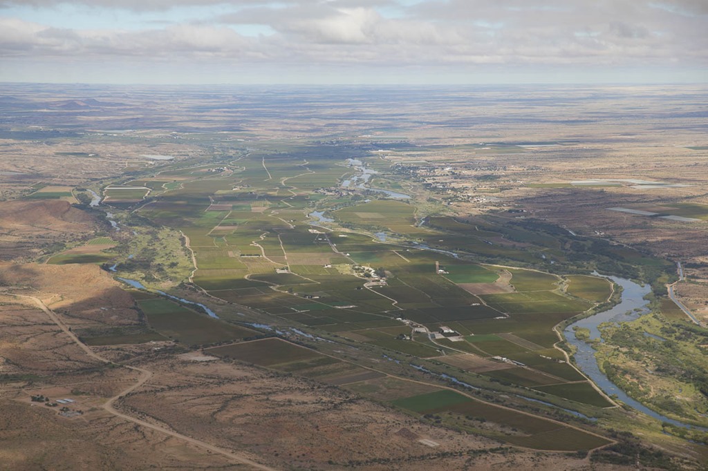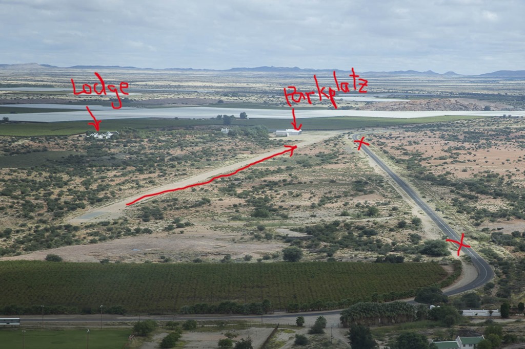 Immer wieder kreuzten wir den Orange River, der offensichtlich als Wasserspender für die Landwirtschaft dient. Unser Ziel, die Augrabies Falls, liegen auch an diesem Fluss. Wir hätten also einfach dem Verlauf folgen können, wählten aber den direkten Weg. Angebaut wird in dieser Region u.a. auch ein sehr guter Wein, den wir später natürlich probieren mussten.