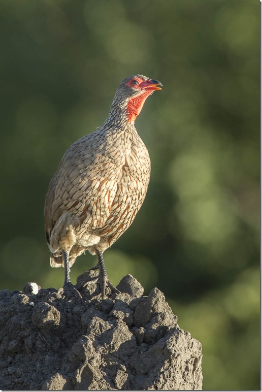 Wenig später stand der Leopard auf, um sich ums Abendessen zu kümmern. Eine halbherzig durchgeführte Pirsch Richtung irgendeinem Huhn endete mit lautem Gackern auf einem Baum. Dadurch waren alle Tiere im Umkreis alarmiert. (Ich nenne pauschal alles “Huhn”, von dem ich den genauen Namen nicht kenne, das aber im Verhalten einem sehr ähnlich ist)