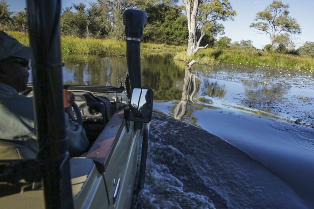 Nachdem wir gestern mit der Cessna in unser neues Revier geflogen waren, war heute ein ganz “normaler” Tag im Delta, wenn man überhaupt von normalen Tagen reden kann, denn jeder bietet neue Überraschungen. An einem solchen ganz normalen Tag ist die Weckzeit um 06:00, sodass man um 06:30 Frühstücken kann und kurz nach Sonnenaufgang um 07:00 die Abfahrt zum morgendlichen Gamedrive ist. Die Nächte sind glücklicherweise nicht allzu kalt, sodass die mitgebrachte Bettflasche im Bag bleiben kann … und um es gleich klarzustellen: Ich habe keine dabei Winking smile Wenn es in der Nacht nicht kalt war heisst noch lange nicht, dass es um 07:00 zur Abfahrt warm ist.  Glücklich der, der eine Kappe und eine leichte Daunenjacke mitgebracht hat. Die anderen sitzen leicht verspannt auf ihrem Sitz, können aber natürlich aus Stolz nicht zugeben, dass der Fahrtwind sich doch ganz schön kühl anfühlt.