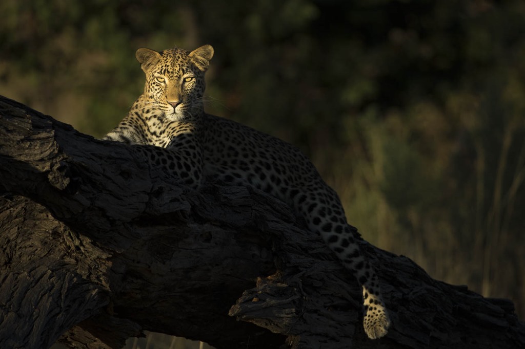 Gegen Abend fanden wir einen weitern Leoparden, dieses Mal war es ein stattliches Männchen. Zuerst lag er noch im Schatten eines Baumes, sodass die Fotografen eine “Feuerpause” einlegen konnten. Nach etwas Warten, war er dann aber schön beleuchtet.