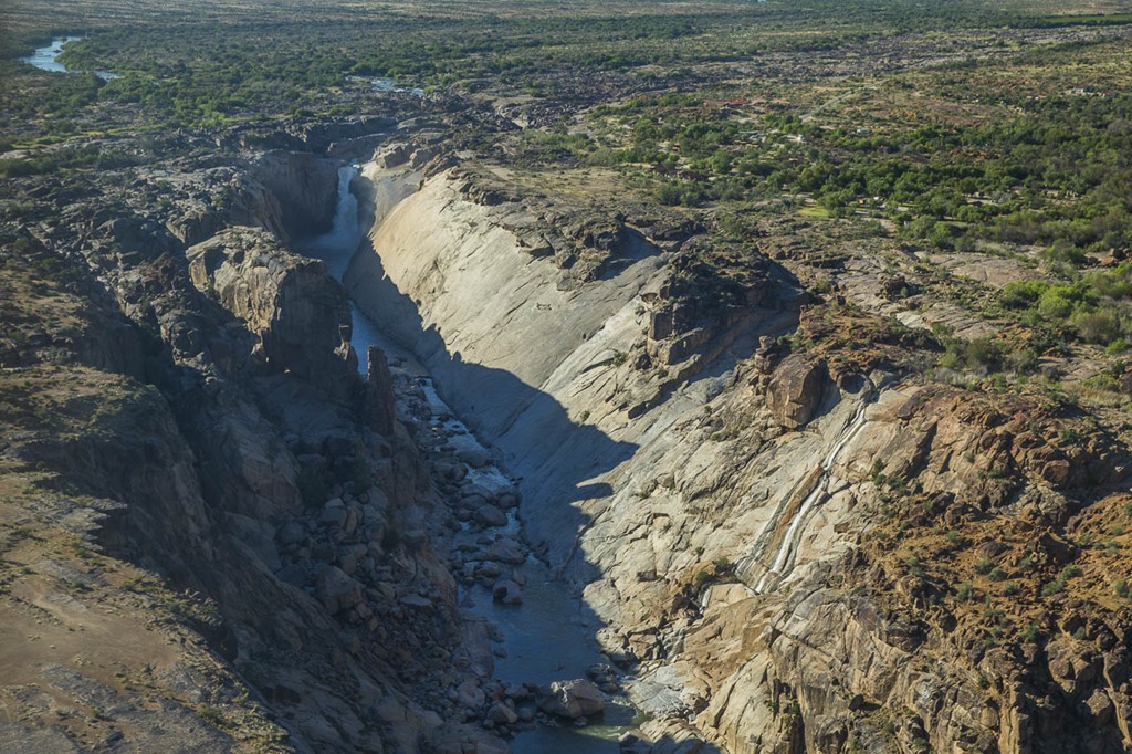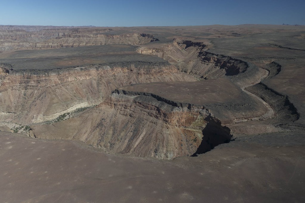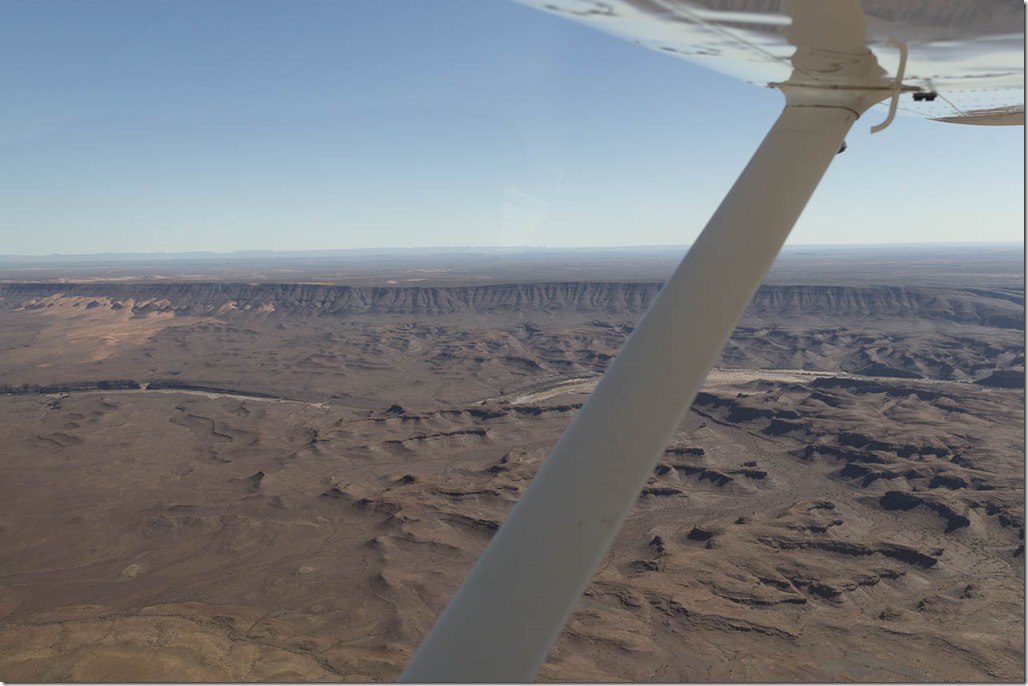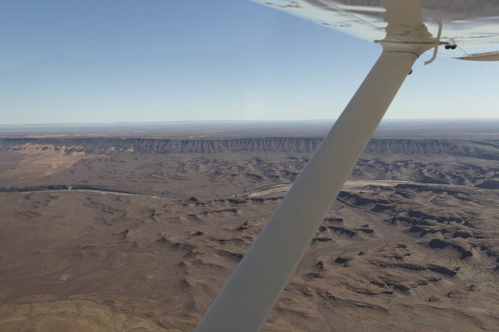 Der heutige Tag hat das Potenzial, sehr langwierig zu werden. Grund dafür sind der Grenzübertritt von Südafrika nach Namibia und die dafür nötigen Formalitäten inklusive Passkontrollen. Erschwerend könnte hinzu kommen, dass heute Sonntag ist und wir auch an einem Ort niemanden telefonisch erreichen konnten, um unsere Ankunft anzumelden. Deshalb beschlossen wir auch, direkt bei der Lodge hier zu tanken und nicht unterwegs, da das zu weitere Warterei führen könnte. Die Flugstrecke war zuerst zurück nach Upington, dem nächstgelegenen Zollflughafen von Südafrika, von dort dann zum nächsten Flughafen in Namibia, Ketmanshop und erst dann zu unserem eigentlichen Ziel, der Fish River Canyon Lodge.