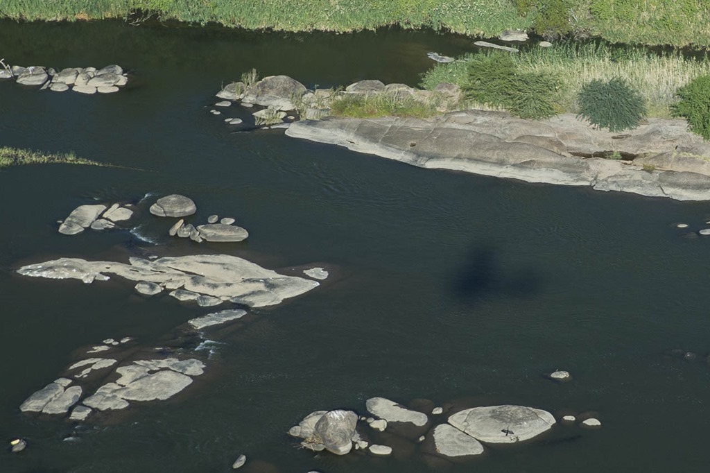 Tiefflug über dem Orange River. Wer gut hinschaut kann auch einen African Darter erkennen, der in der Sonne seine Flügel trocknet.
