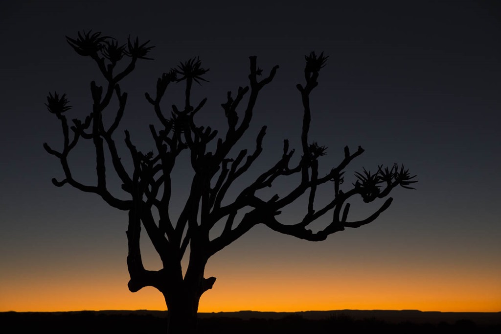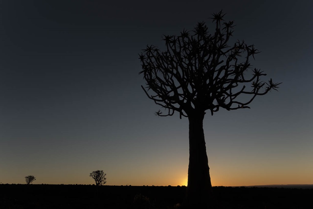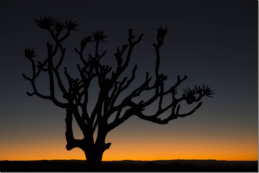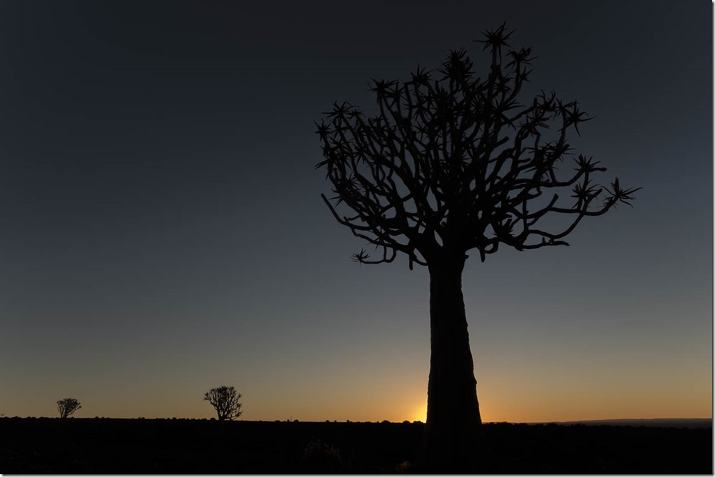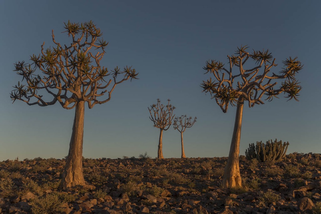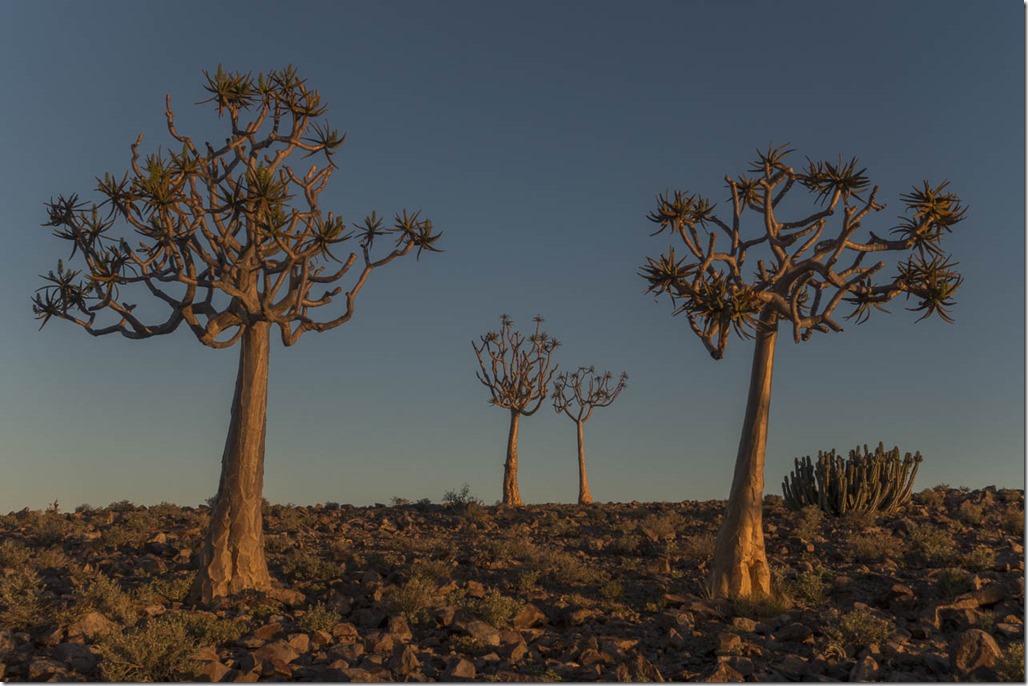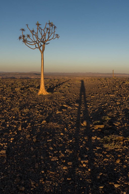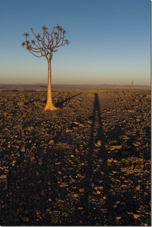 Um die Lodge gibt es viele alleinstehende Quiver-Trees (Köcherbäume). Ein wahrhaft lohnendes Sujet für jeden Fotografen. Und so stürzte ich hatte mich schnell in die Laufschuhe, um die angrenzende Krete mit meinem Fotoapparat unsicher zu machen. Die Schatten wurden schnell länger und länger.