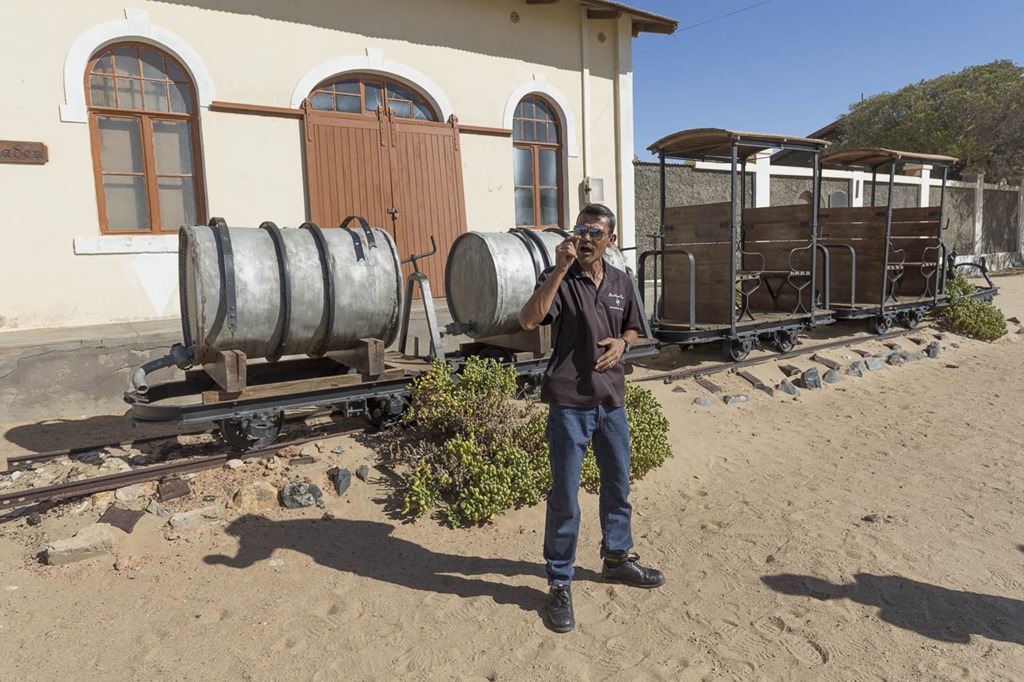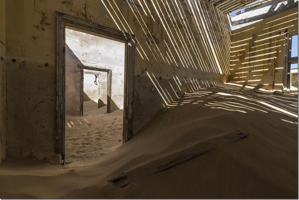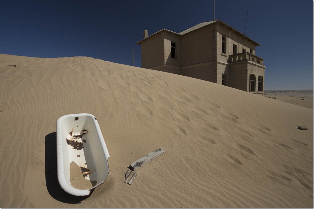 Doch bevor es soweit ist, wollen wir natürlich noch zuerst die Geisterstadt Kolmanskop besuchen, die zwischen Lüderitz und dem Flughafen liegt. Die Stadt wurde 1905 von einem Herr namens Coleman gegründet, da es mit seinem Ochsenkarren dort stecken blieb. Die Stadt stieg dank des Diamantenabbaus innerhalb weniger Jahren zur reichsten Stadt von Afrika auf. Aufgebaut von Deutschen Siedlern war sie ihrer Zeit voraus. Es gab Strom, Telefon und selbst eine Eis-Fabrik. 1930 waren dann alle Diamanten in der Region abgebaut, was auch das Ende der Stadt bedeutete.  Führungen werden hier selbstverständlich auch in Deutsch angeboten.