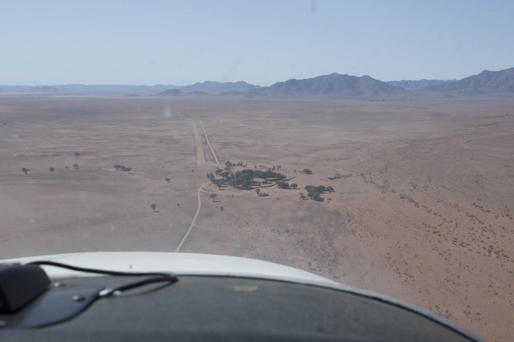 Anflug auf den Airstrip von Wolwedans Boulders.