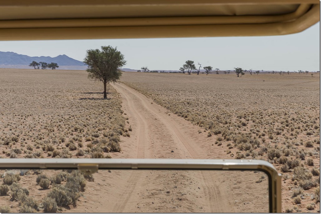 Vom Airstrip sind es noch rum 15 Kilometer bis zur Lodge. Da ich uns schon von Lüderitz aus angemeldet hatte, wartete bereits ein Fahrzeug auf uns. Bald stellte sich heraus, dass Tee bereits bei letzten Besuch von Boulders im 2014 unser Guide war. Er heisst natürlich nicht Tee, aber seinen richtigen Namen kann man sich überhaupt nicht merken, geschweige denn, aussprechen.