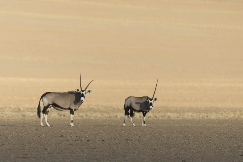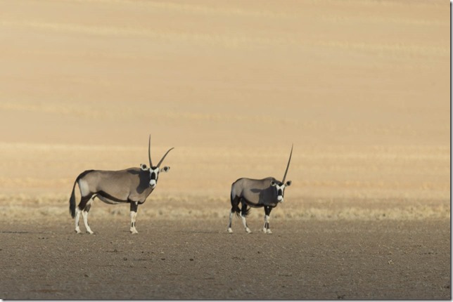 … und natürlich auch die Oryx, wobei hier einer ein etwas deformiertes Horn hat und der andere eines seiner beiden Hörner bei einem Kampf verloren hat.