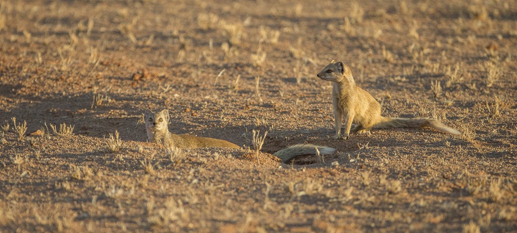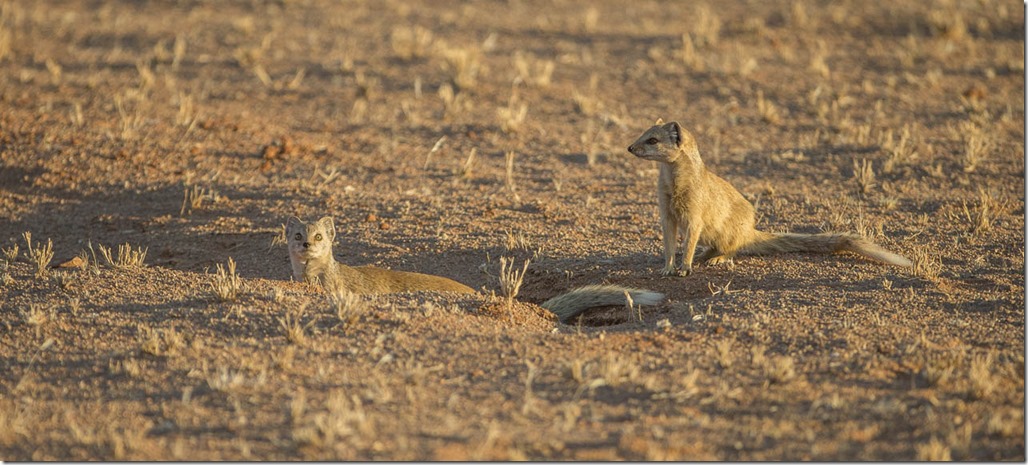 Da sind diese zwei schon deutlich weniger ängstlich, wo bei sie auch nicht ganz schlüssig sind. Es handelt sich um irgendeine Mongoose-Art.