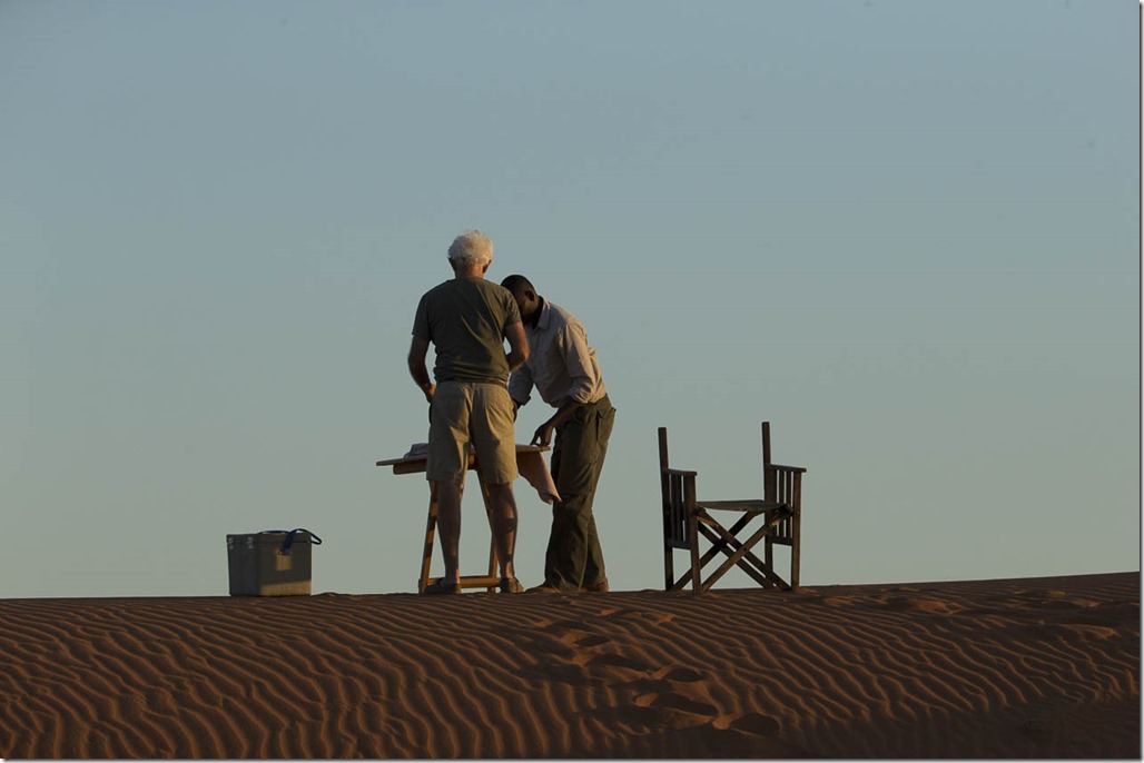 Vorbereitungen zum Sundowner. Der “Sonnenunterganstrunk” ist hier regelmäßiger Bestandteil der täglichen Aktivitäten. Da jeder Sonnenuntergang hier schön ist, muss man das eben jedes Mal feiern. Wir waren übrigens am gleichen gleichen Ort wie auf der Reise vor 1.5 Jahren.