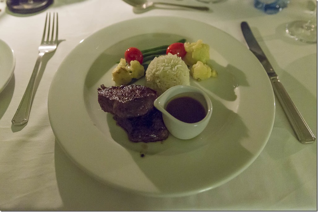 Im Boulders Camp hat es Platz für maximal acht Person. Mit uns war noch eine Gruppe von vier netten Engländern. Das Nachtessen besteht in der Regel aus 5 Gängen und ist vorzüglich und liebevoll präsentiert. Hier all Stellvertretung der Hauptgang: Elandfillet