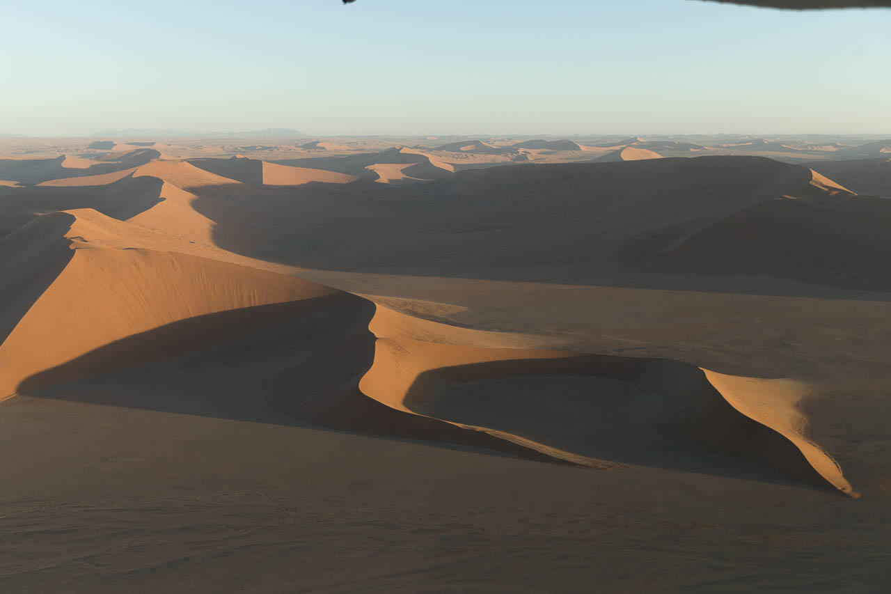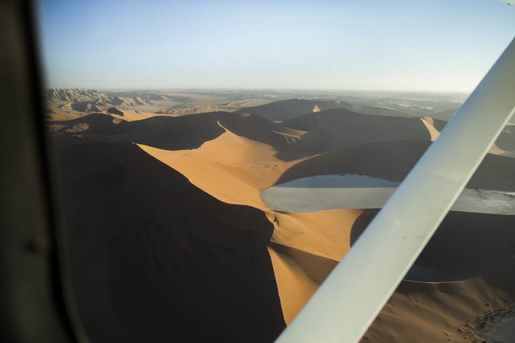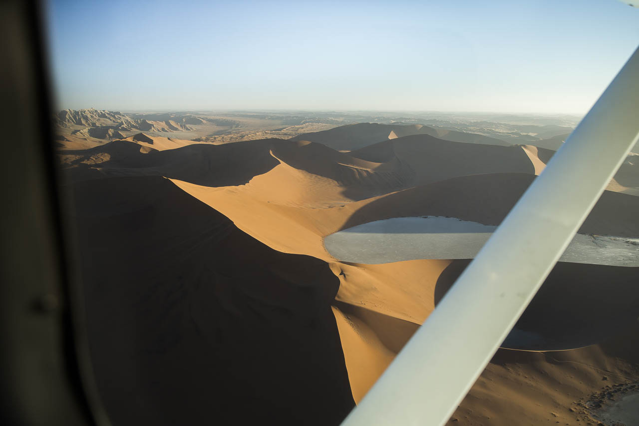 Nach der Rückkehr zur Lodge gab es eine ausgedehnte Siesta. Unser Plan für den Rest des Tages war es, so spät wie möglich zu einem Sightseeing-Flug zu den Dünen zu starten. Sonnenuntergang war um 17:30 und so startet wir gegen 16:30.