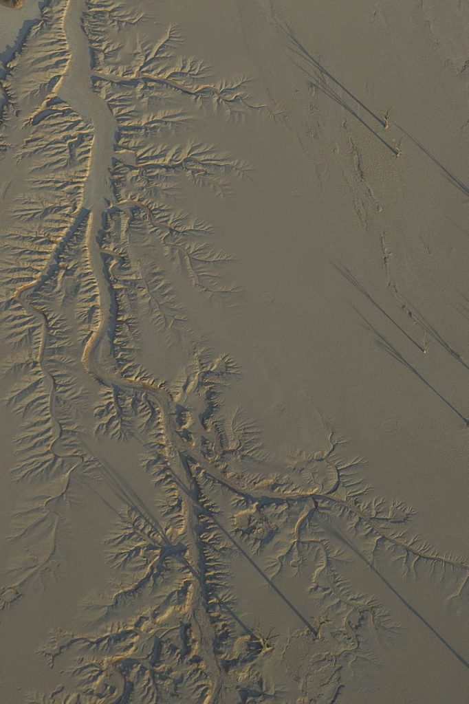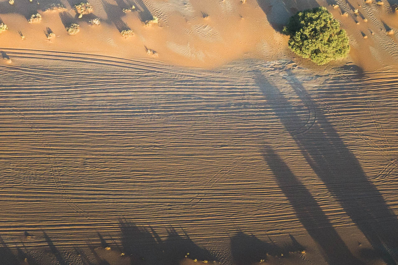 Spuren aus der Luft. Es handelt sich um die Autospuren vom 2wd zum 4wd Parkplatz in Sossusvlei