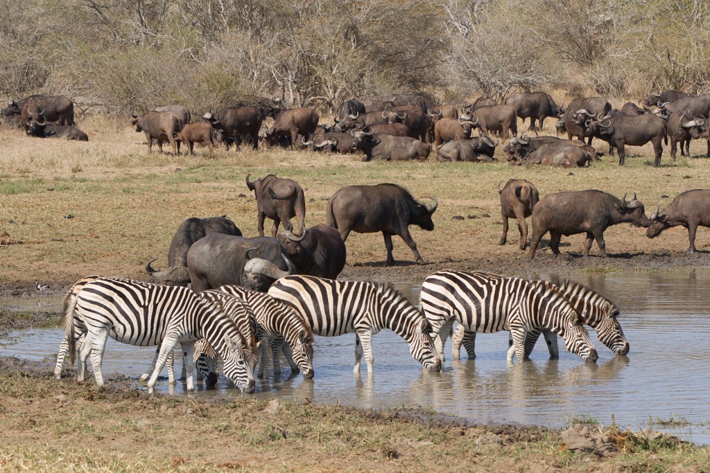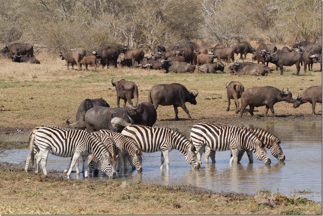 Heute war ein Reisetag in nächste Camp, was einen ganz normalen Tag bedeutet, ausser das der Start- und Endpunkt nicht die gleichen waren und wir wegen des Packens erst um 06:30 losfahren konnten. Es ging etwa 92 Kilometer weiter südlich ins “Lower Sabie Camp”. Der Krügerpark ist ja relativ schmal, im Durchschnitt um die 60 Kilometer, erstreckt sich aber auf einer Länge von 380 km von Norden nach Süden. Je weiter man südlich kommt, desto grösser ist die durchschnittliche Regenmenge. Im Norden sind es 40cm pro Jahr, im Süden bis zu 70. Und in der Tat hatte es den Anschein, dass die Ebenen auf der Fahrt in den Süden einen leichten Grünstich bekamen. Vielleicht ist das aber auch nur Einbildung oder durch die etwas andere Vegetation verursacht.