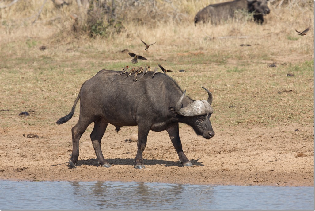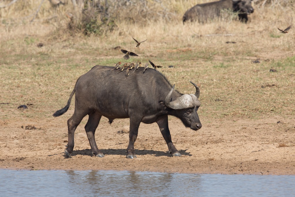 Die Oxpicker kennen wir ja schon. Die Frage ist, wieviele können auf einem Büffel gleichzeitig landen?