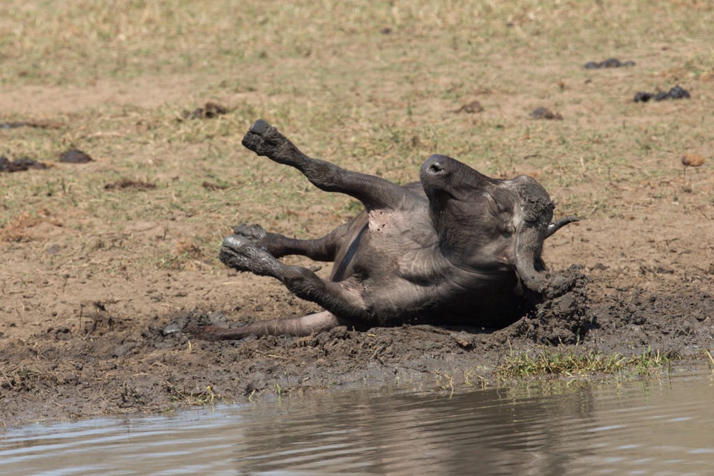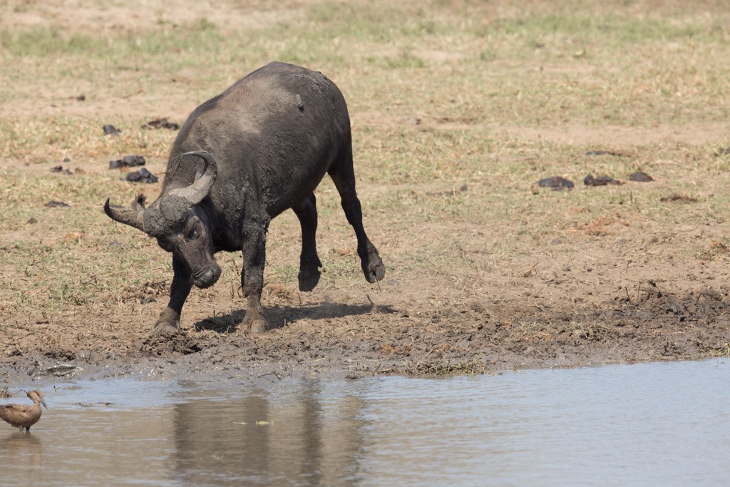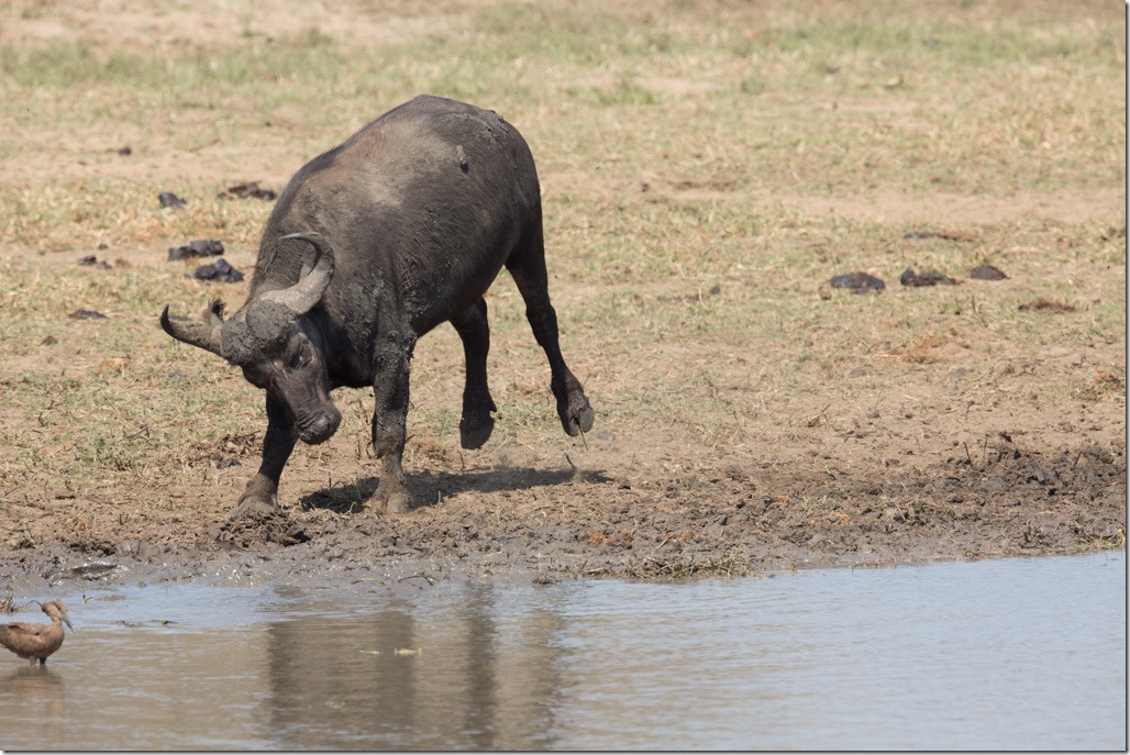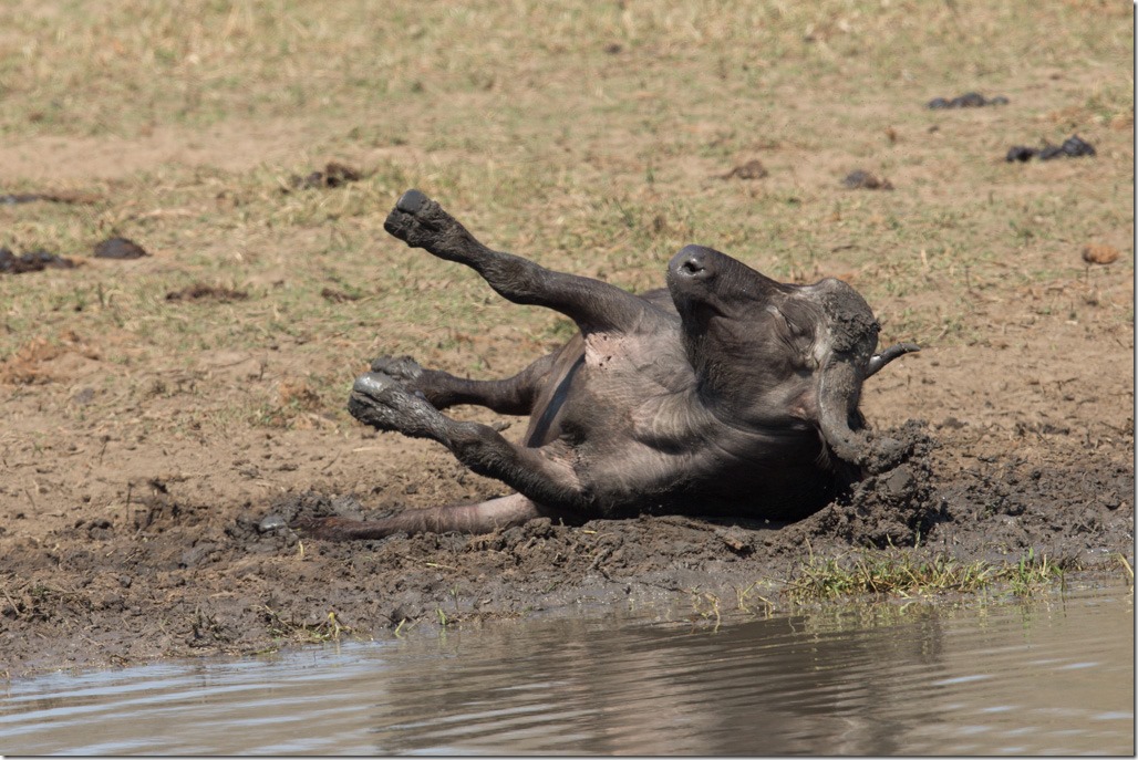 Die Büffel scheinen dieses Wasserloch zu lieben. Im Schlamm