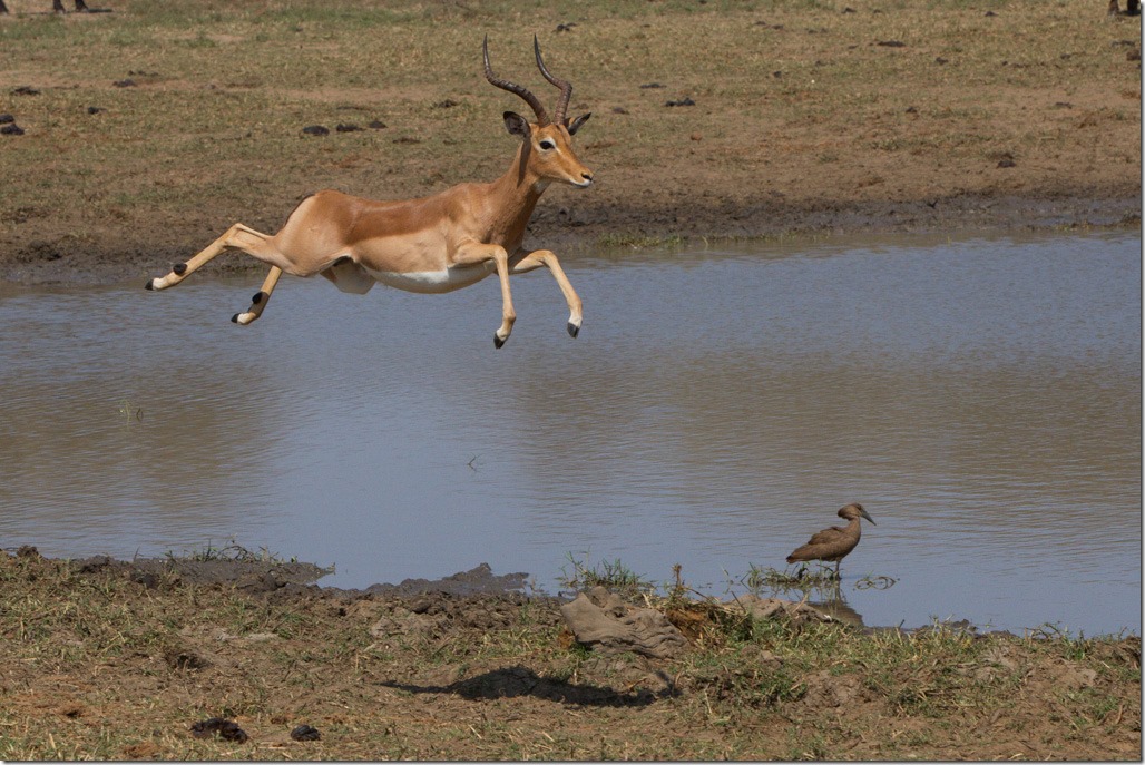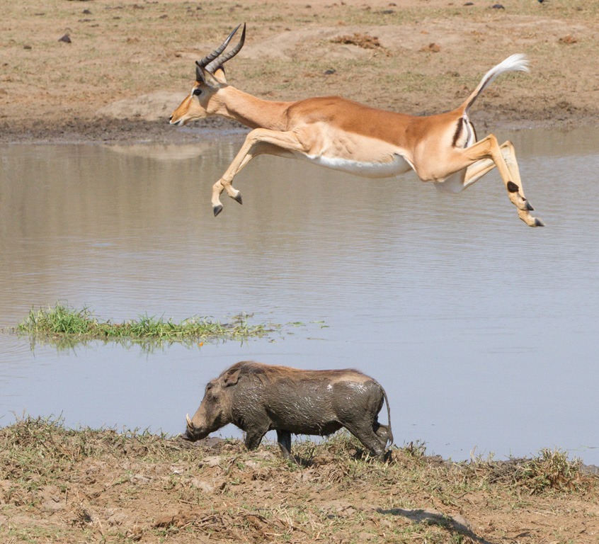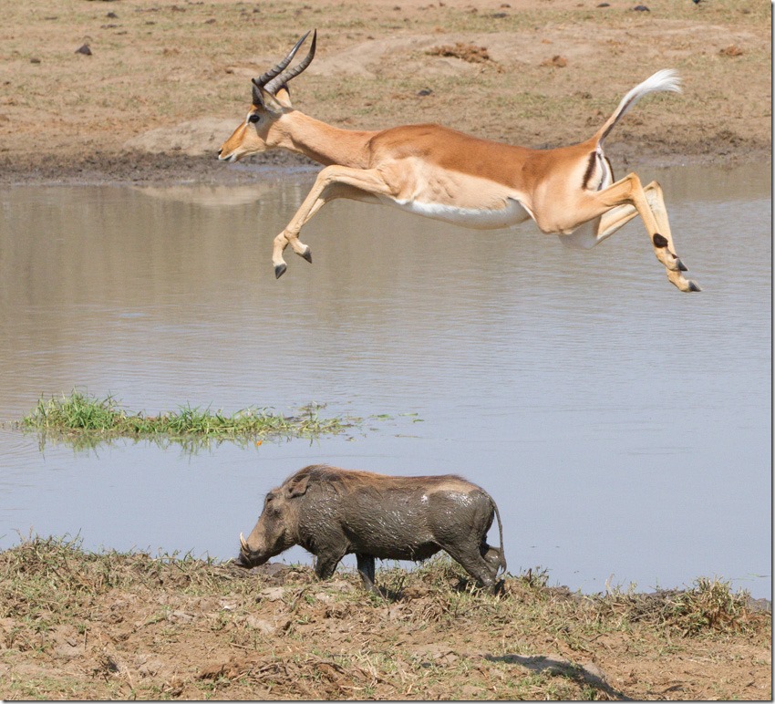 Andere Tiere sind nicht solche Schmutzfinken. Dafür haben sie einen ausgesprochen Bewegungsdrang. Die Impalas, die man als Zwischenmalzeit der Raubtiere bezeichnen kann, haben für ihr Überleben ausgesprochene Springfähigkeiten entwickelt.