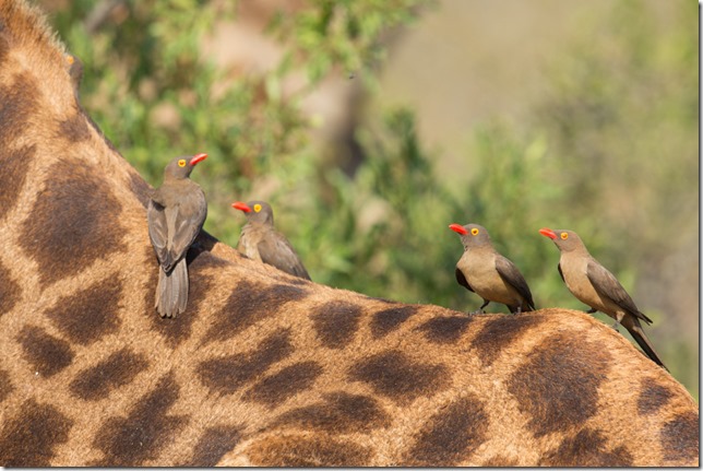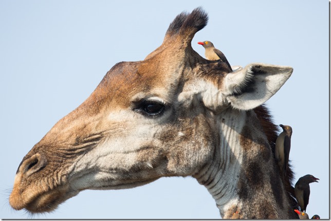 Auf dem restlichen Weg konnten wir noch einmal Oxpicker bei der “Arbeit” sehen. Dieses Mal belästigten sie eine Giraffe aufs ärgste. Die Giraffe