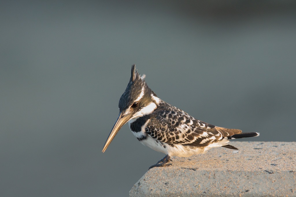 Kurz vor der Ankunft gab es noch eine Brücke über den Sabie Fluss. Normalerweise verharren die Kingfisher fliegend über dem Wasser um nach Futter Ausschau zu halten, um dann im Sturzflug danach abzutauchen. Dieser “Pied Kingfisher” war offensichtlich ein ganz fauler Vertreter seiner Spezies. Statt zu fliegen sass er nämlich auf der Brücke und starrte nach unten ins Wasser.