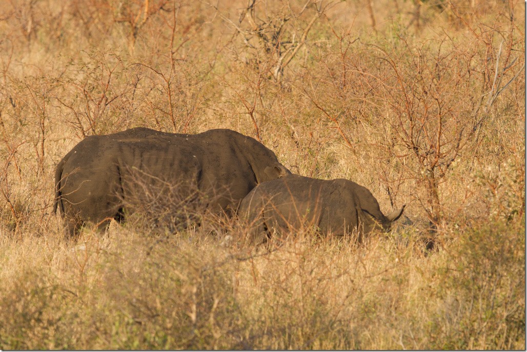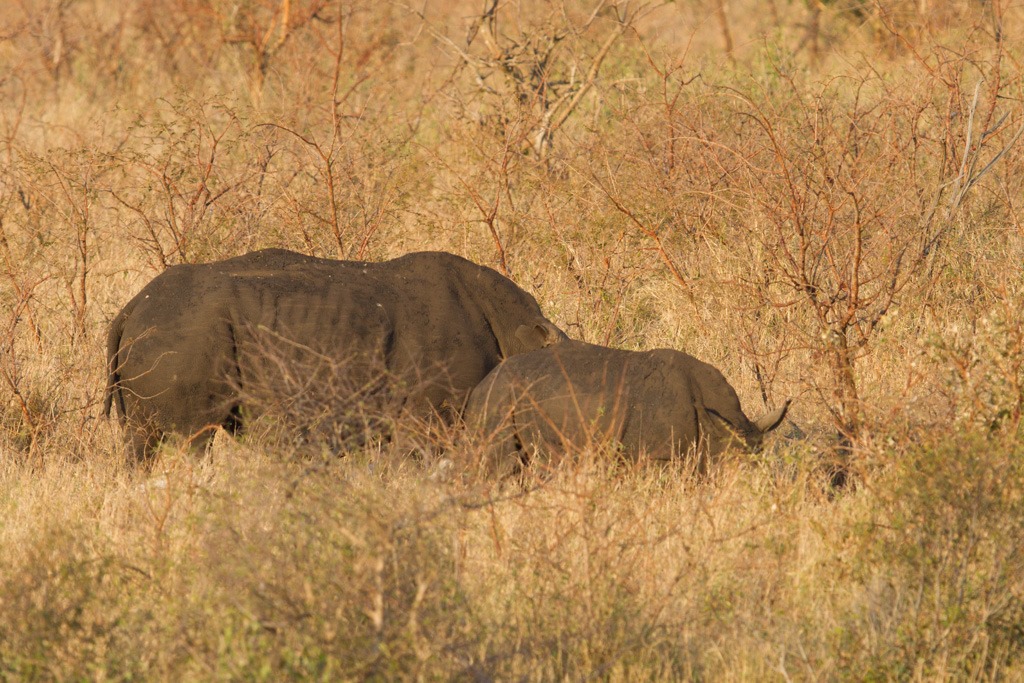 Und noch ein Nashorn Mutter mit Kind beim Fressen. Kein besonderes Foto, nur der Vollständigkeit halber