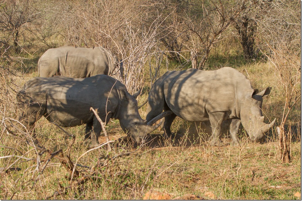 Ich habe ja erst zwei Safaris gemacht. Die Aussage ist also sehr subjektiv und die Statistik ist noch nicht wirklich gut. Was mir aber auffällt ist die Tatsache, dass die Tiere in Krüger Park in Südafrika in der Regel viel näher kommen als in den Parks in Namibia. Das fällt mir deshalb so genau auf, da ich in Namibia immer mit einer Kamera/Objektivkombination Bilder gemacht habe mit einer effektiven Brennweite von 800mm. Hier im Krüger Park habe ich “nur” eine Setup mit 600mm, ich habe aber schon an manchen Stellen nicht mehr das ganze Tier fotografieren können sondern nur einen Teil davon, da es zu nahe war. Wenn ich die Bauten innerhalb des Etoscha Parks in Namibia mit denen im Krüger Park vergleiche, fällt auf, dass am Krüger Park schon viel mehr “rumgebastelt” wurde. Das hat mir auch Stu, unser Guide, heute bestätigt. Früher haben sie sehr viele komische Sachen im Park gemacht, z.B. alle Löwen geschossen, da sie einen negativen Einfluss auf die Population der Pflanzenfresser haben könnten. Auch wurden zahlreiche Dämme gebaut und es gab eine Eisenbahnlinie durch den Park. Diese Einstellung hat sich in der Zwischenzeit aber stark geändert. Heute zählt der Krüger Park als eine der führenden weltweit auch im Bezug auf wissenschaftliche Untersuchungen. Immer noch ein Riesenproblem sind die Wildere,r die es vor allem auf Nashörner und Elefanten abgesehen haben. So können mit den Hörnern von einem Nashorn in China astronomische Summen erzielt werden, da es angeblich potenzsteigend ist, was natürlich absoluter Blödsinn ist. Zurück zum Vergleich Namibia zum Krüger Park. Landschaftlich punkten Parks in Namibia etwas mehr als der Krüger Park. Allerdings habe ich von Krüger Park auch nur einen kleinen Teil gesehen. Die Verwüstung durch Elefanten ist hier nicht so ausgeprägt wie an manchen Stellen in Namibia. Dafür ist der Krüger Park nicht ganz so viel “Natur”, denn viele Strassen sind geteert und es gibt doch immer wieder irgendwelche Infrastruktur-Bauten. In Etoscha Park gab es in den Camp beleuchtete Wasserlöcher an denen man auch Nachts vom Camp aus die Tiere beobachten konnte. Leoparden habe ich nur im Krüger gesehen … Ich würde sagen es ist unentschieden. Man muss einfach beide Parks gesehen haben! Wenn ich trotzdem einen auswählen müsste, dann würde ich in den Masei Mara Park in Kenia oder das Mala Mala  Game Reserve in Südafrika gehen, denn da war ich (noch) nicht. Winking smile
