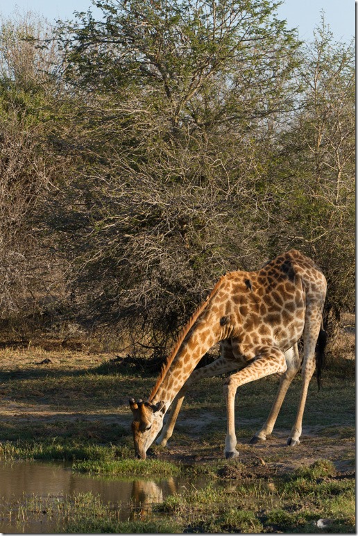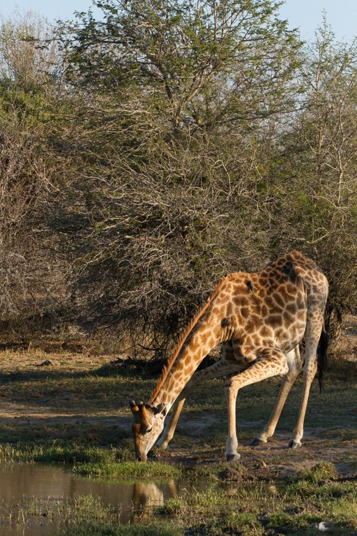 Danach gab es eine einzelne Giraffe. Man beachte die Drinktechnik, wenn die Beine zu lang sind.