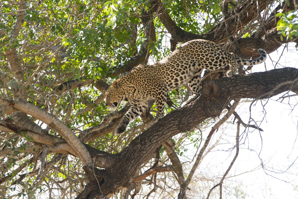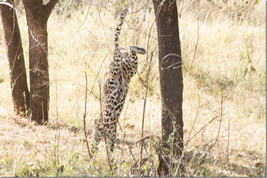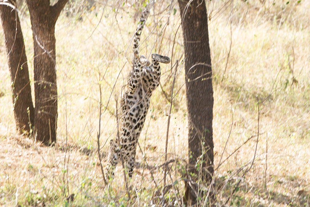 Gleich nach dem Fressen machte sich der Leopard Richtung Erde auf. Zumindest das hat das schlaue Buch richtig beschrieben.
