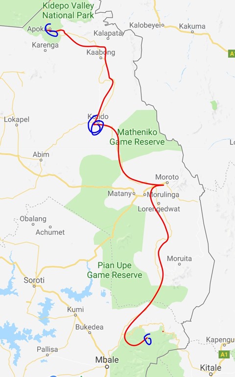 Our journey from Sipi to “Kidepo Valley National Park” with a night in Kotido.