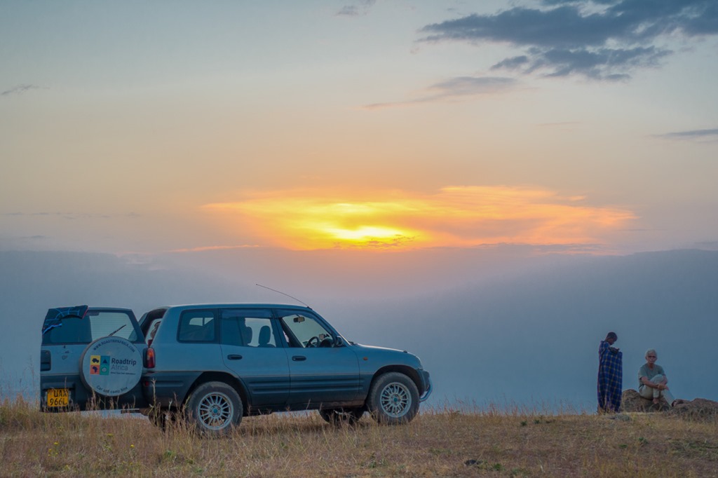 Sun setting in Kotido. Don’t get his wrong: The weather was perfect, there were just some clouds over the horizon.