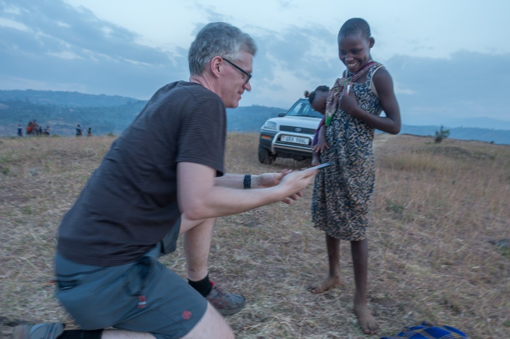 … and also stop from time to time to say hello to the people living in the area. You should have seen the old man smiling with the few remaining teeth when he got his picture printed!