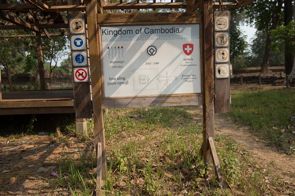 Von Banteay Srei gibt es sogar eine Beziehung zur Schweiz: Und zwar hat die Schweiz eine Restauration nach der Jahrtausendwende finanziert wie diese Tafel zeigt.