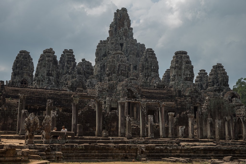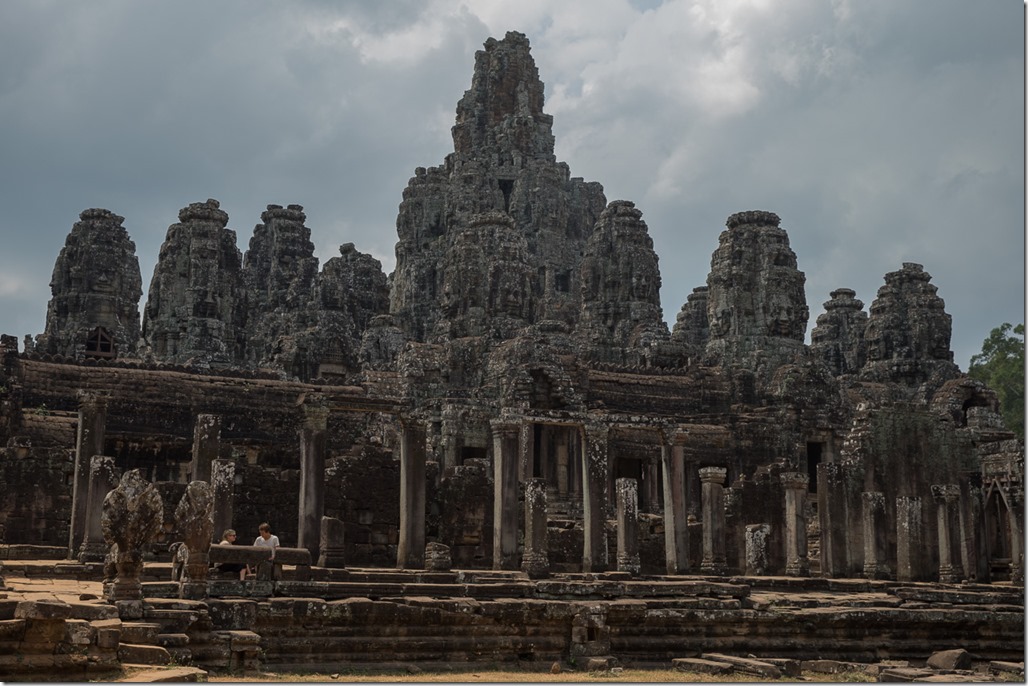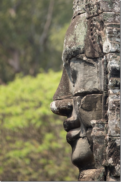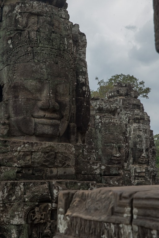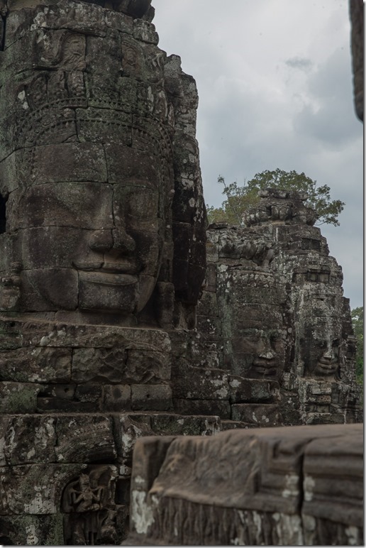 Als nächste Station war der Temple Bayon, gebaut im späten 12. Jahrhundert. Er besteht aus 54 Türmen, wobei sich an jedem der Türme in alle vier Himmelrichtung ein Gesicht befindet. Das macht total 216 Gesichter, logisch. Von Weitem sieht der Tempel ziemlich zerfallen aus,