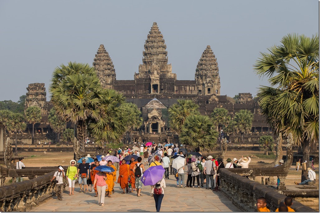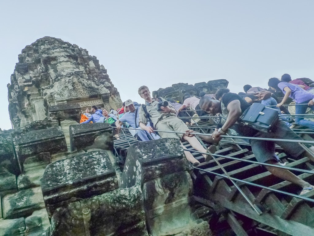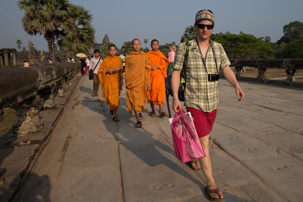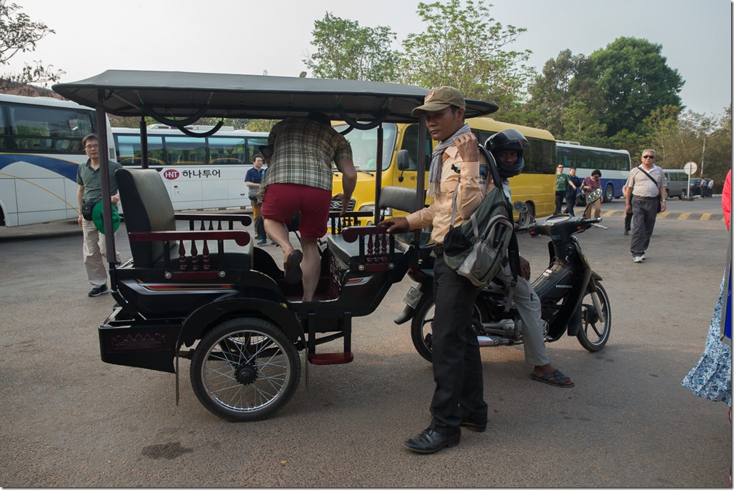 Was sofort auffällt ist, dass praktisch alle Touristen aus dem asiatischen Raum kommen, bzw.  die anderen in der Menge Chinesen untergehen. Mein Flug von Hanoi war schon voll Chinesen. Und so wurde “we want to be there before the Chinese” – “wir wollen vor den Chinesen dort sein”  ein häufig verwendeter Satz von uns. Man sieht auch deutlich eine Abstufung bei den Asiaten: Die Chinesen reisen mit den klimatisierten modernen Reisecars in den Tempelanlagen umher, die Japaner verwenden ältere Busse und die Koreaner sind mit TukTuks unterwegs.
