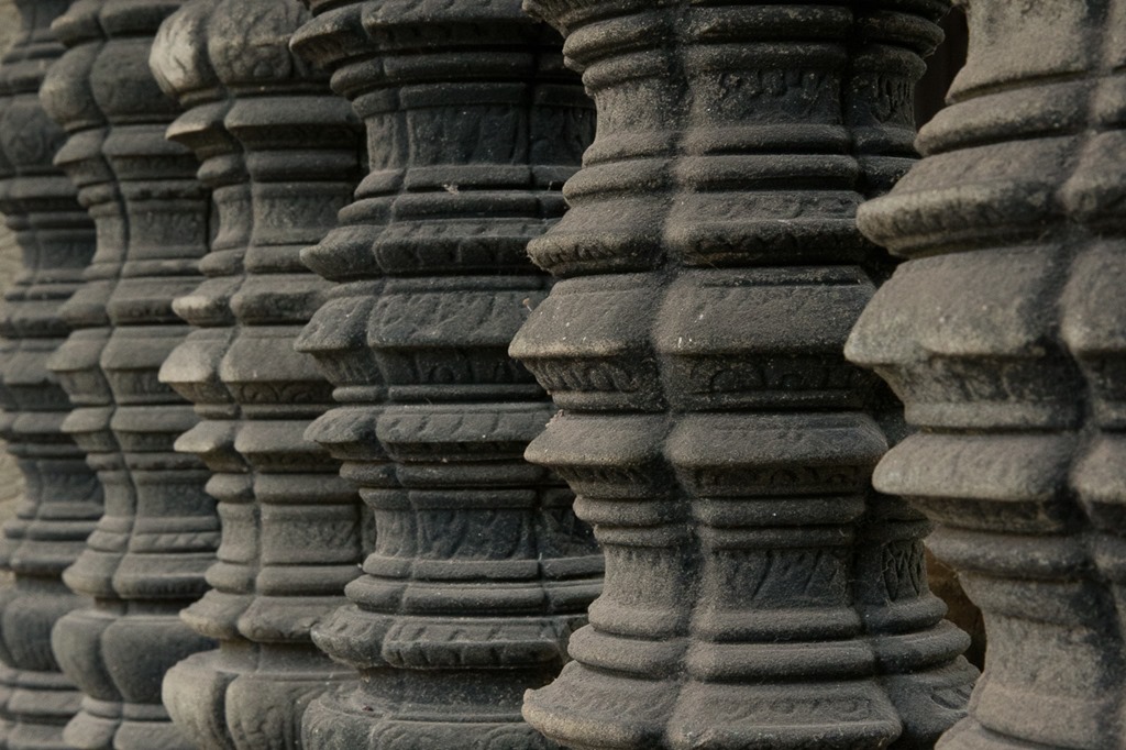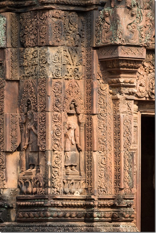 Der rosa Sandstein ist sehr weich und lässt besonders detaillierte Ornamentik zu, die fast wie geschnitzt aussieht.