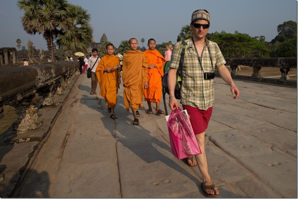 Immer wieder sieht man buddhistische Mönche in den Anlagen. Diese wohnen aber nicht hier, sondern sind wie wir Touristen auf Besuch. Auffällig ist, wie modern sie zum Teil ausgestattet sind.  Mit Smartphone der neusten Generation werden Erinnerungsfotos gemacht.