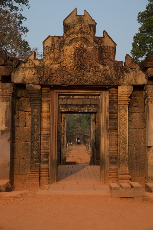 Danach (für die einen Sonnenaufgang, für andere Einkauf) ging es mit unserem TukTuk in rasender Fahrt weiter. Das Ding schafft wirklich 60km/h. Dann fühlt es sich aber schon fast wie fliegen an. Statt der übliche 45 Minuten brauchte unser Fahrer nur 30 Minuten. Es hat sich aber auf jeden Fall gelohnt, denn wir hatten den Tempel praktisch für uns alleine. Durch das Eingangstor gelangte man zum eigentlichen Bauwerk