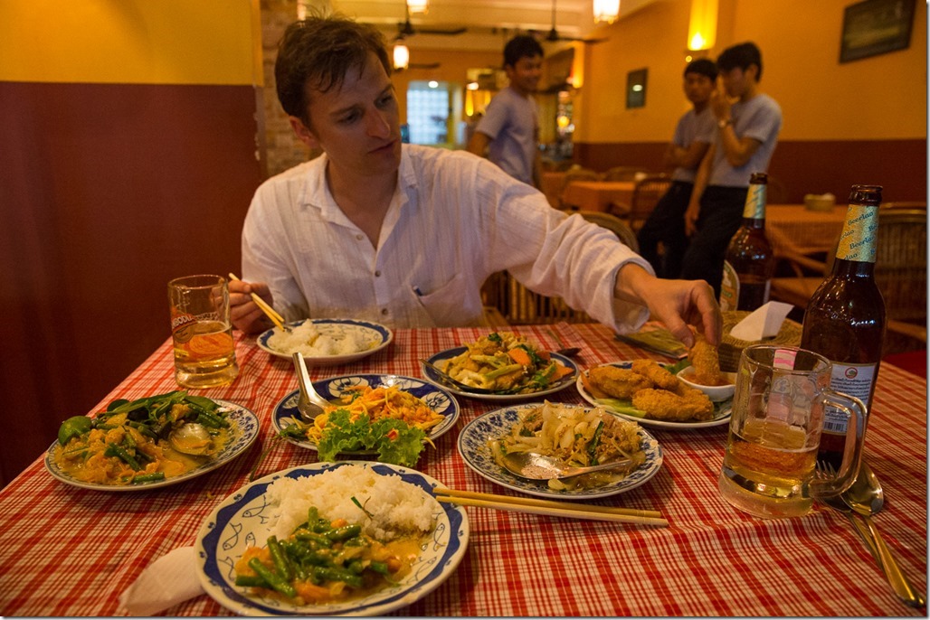 Wie kann man einen langen Tag würdig abschliessen? Richtig! Mit einem guten Essen. Der Hunger hatte uns zu einer doch recht umfassenden Probe der lokalen Köstlichkeiten veranlasst, sodass wir danach schon fast ins Hotel zurückrollen konnten.