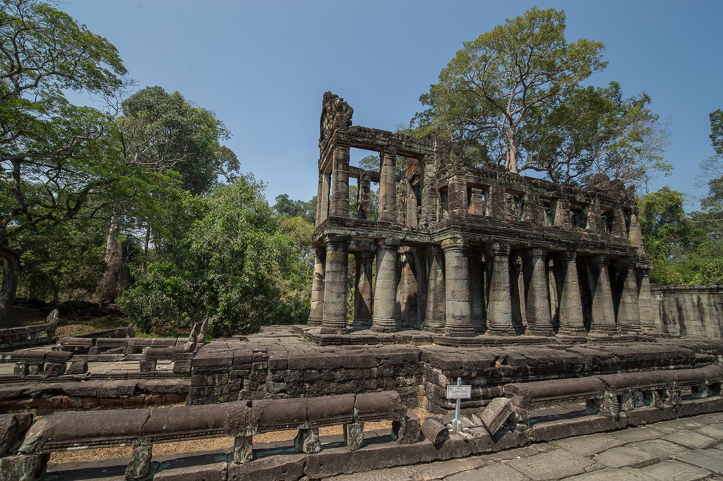 Am Nachmittag gab es natürlich noch mehr Tempel. Highlight war sicherlich der Preah Khan Komplex. Früher soll es ein Kloster für bis zu 1000 Mönche gewesen sein. Doppelter Säulengang. Wenn in die Nähe geht sieht man, wie das Bauwerk mit Verstrebungen aus Metall zusammengehalten wird. Nur so ist zu erklären, dass es immer noch steht. Denn gebaut wurde diese Anlage ebenfalls im 12. Jahrhundert.