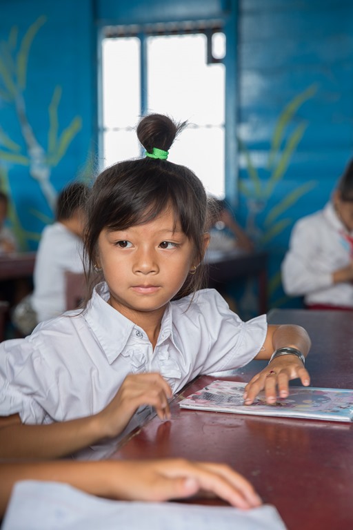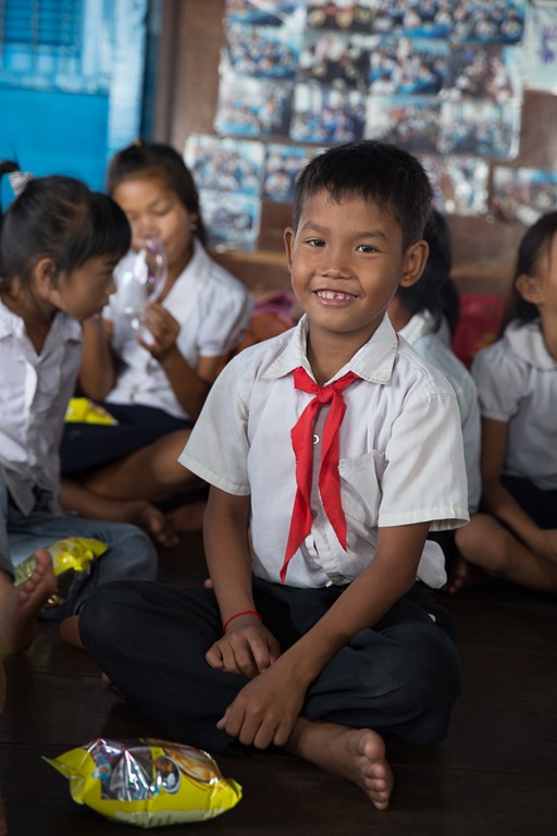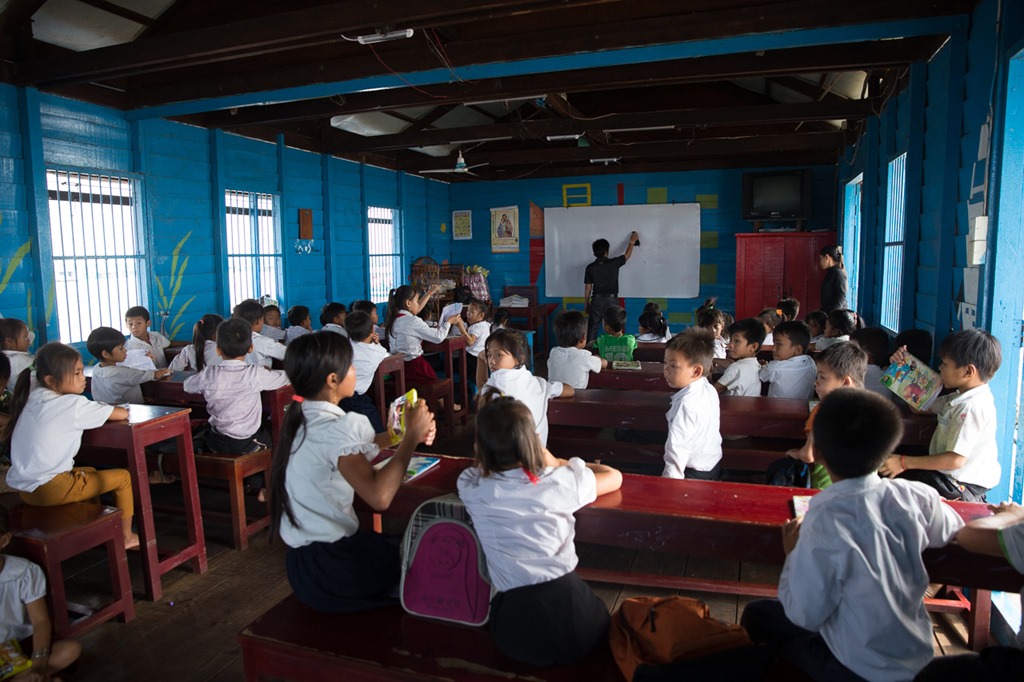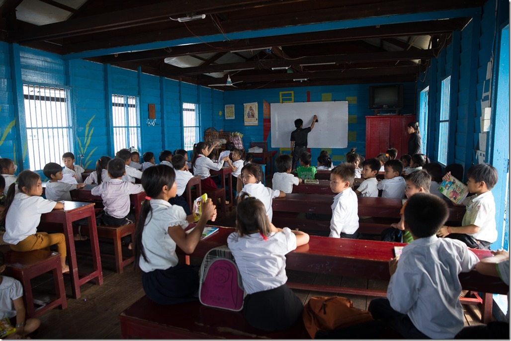 Wir haben im schwimmenden Dorf auch noch die Schule unterstützt. Aber nicht mit einer Geldspende, sondern indem wir vorher einen Sack Reis gekauft haben und