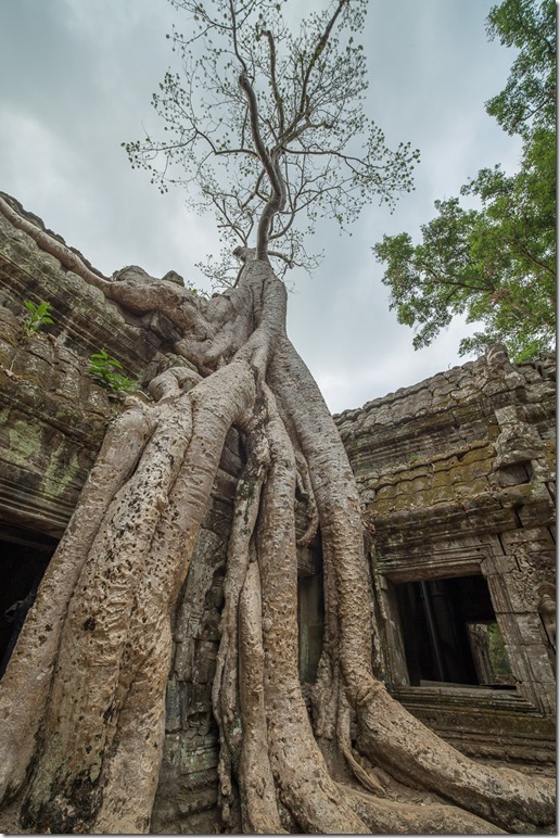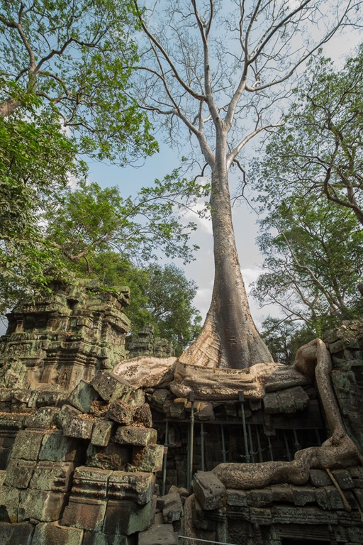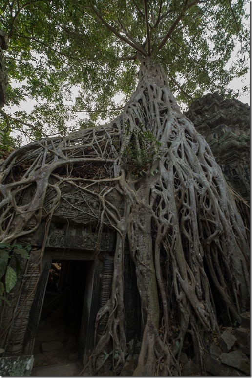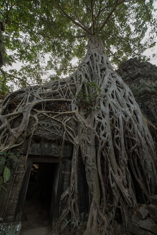 Mit unserem Führer waren wir am ersten Tag auf der kleinen Tour unterwegs. Darin enthalten sind die wichtigsten Tempel der Anlage, mit Ta Prohm, Angor Thom und Bayon und Angor Wat. Angefangen haben wir frühmorgens um 07:30, vor den Chinesen versteht sich von selbst, in Ta Prohm. Ursprünglich als buddhistisches Kloster gebaut, ist es heute hauptsächlich wegen der Bäume bekannt, die die Tempelanlagen überwuchern.